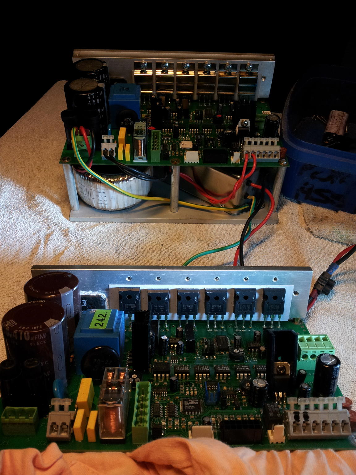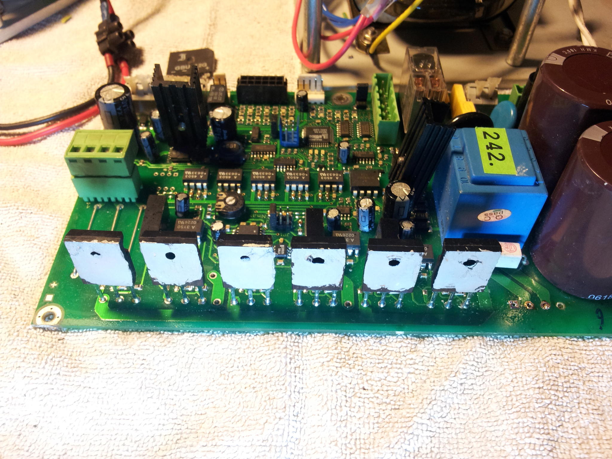 -2- the 2 fuses on the board ( T10A ) don't fuse anymore - before, fuses were 6.3A ( no tempo ) ( but the differential switch now trips on my main power board )