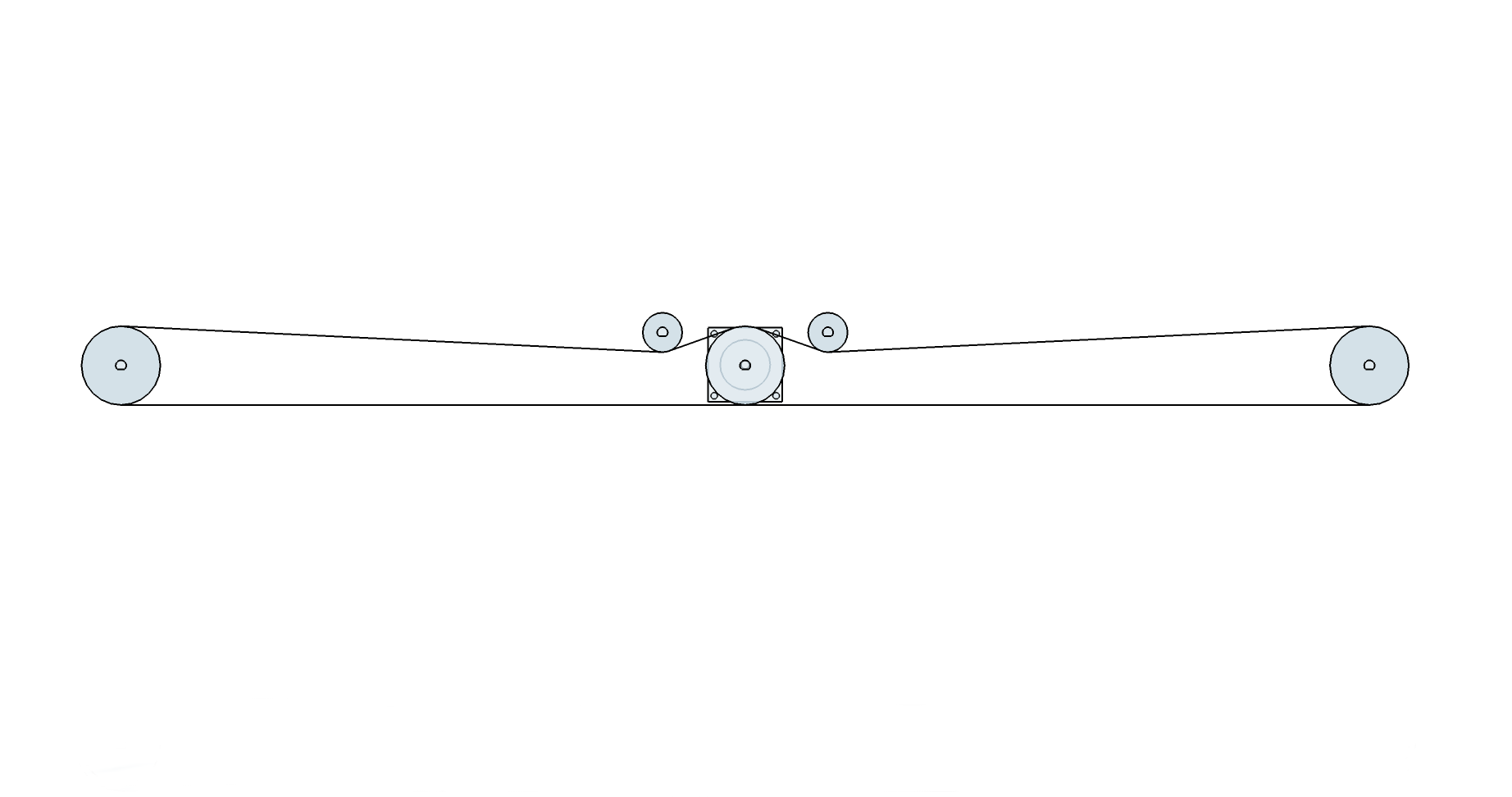 With the before mentioned you can drive all with short HTD 5M 15mm short belts and 20T pulleys 1:1, To calculate the center distances and other measures