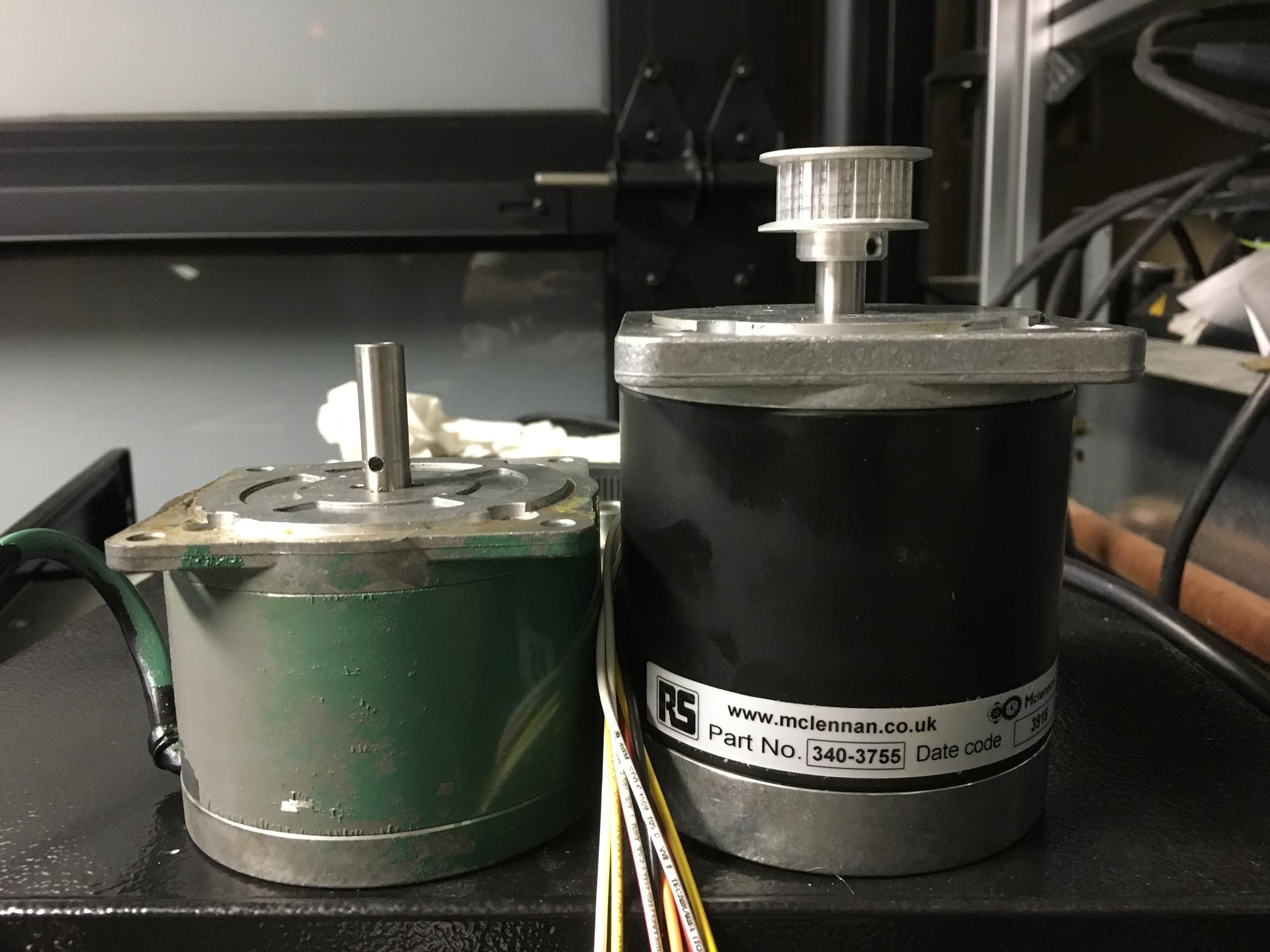 I did have time to measure the position of the stepper pulley on the shafts for the new stepper. The new steppers for x and y are much larger than the originals, but they fit!