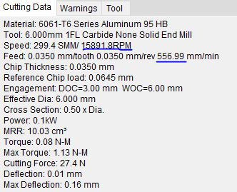Much about Feeds And speeds is learning your machine and what likes or doesn't in terms of tools and materials.!