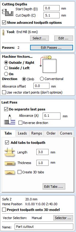 Profile cut path settings: