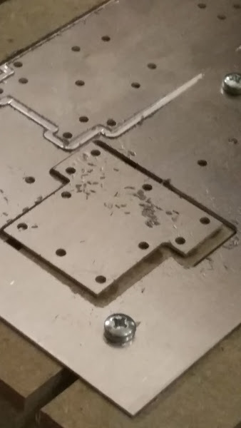 I messed up and set the cutter a little too low and so there was no onion skin so the part jumped out and nicked a little in the middle of the long edge. And I need to come up with a solution for not destroying the MDF board with lubrication.. but apart from that.. there was no welding sides.. just lovely chips.