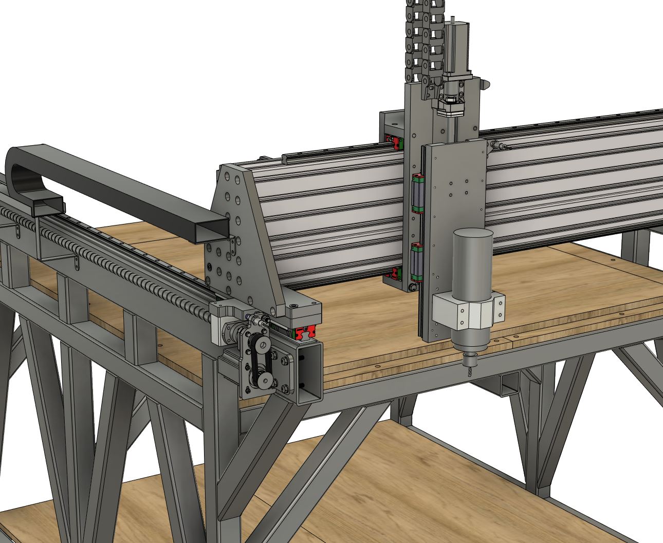 You also don't need 3 chains, on the machines I build I only fit chains on X-axis and Y-axis, the Z-axis which is mostly just the spindle cable and water pipes, I run thru flexible conduit.