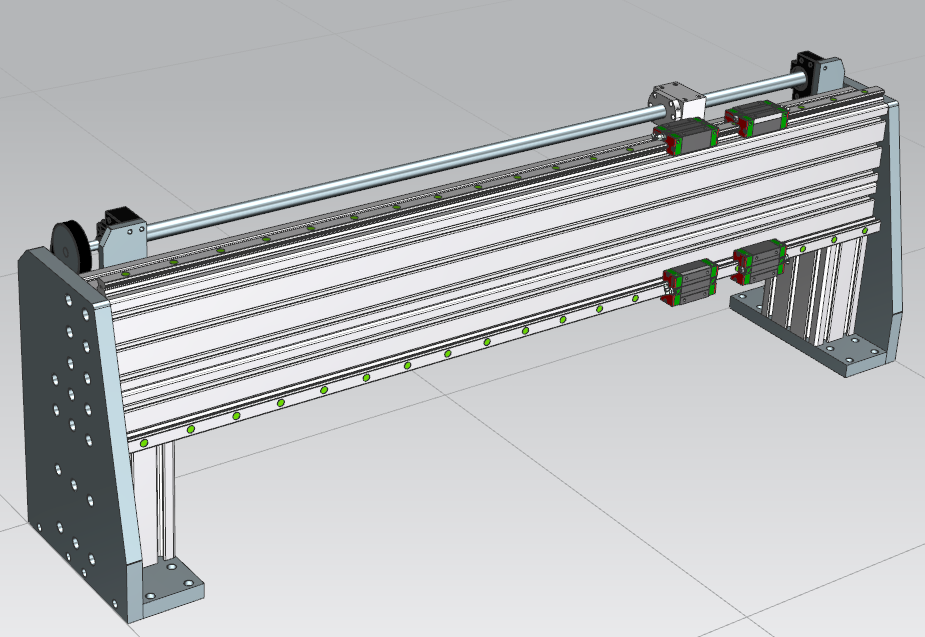 - 1600mm long, 160x80 (heavy) Item profiles will be used for the sides, onto which the linear rails are mounted. Travel length is approximately 1400mm.