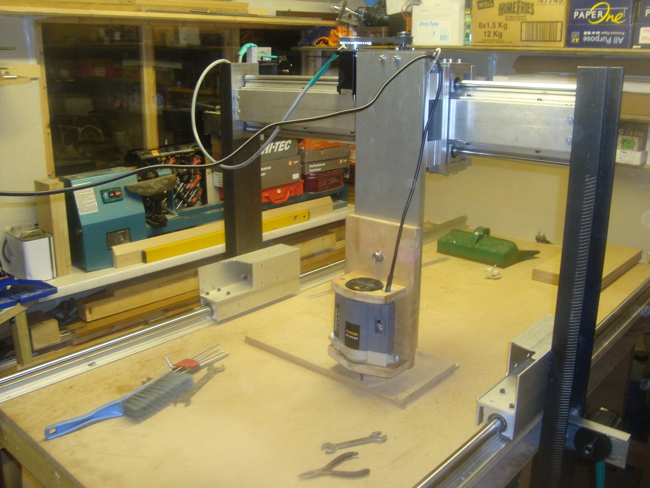 I agree putting steel strips on the bed is a good plan, but again very expensive - unless you know of a better supplier than me! I could skim the existing 18mm MDF bed with the router before putting the steel on top. That should get it reasonably parallel. I guess I could afford to make a smallish steel bed.