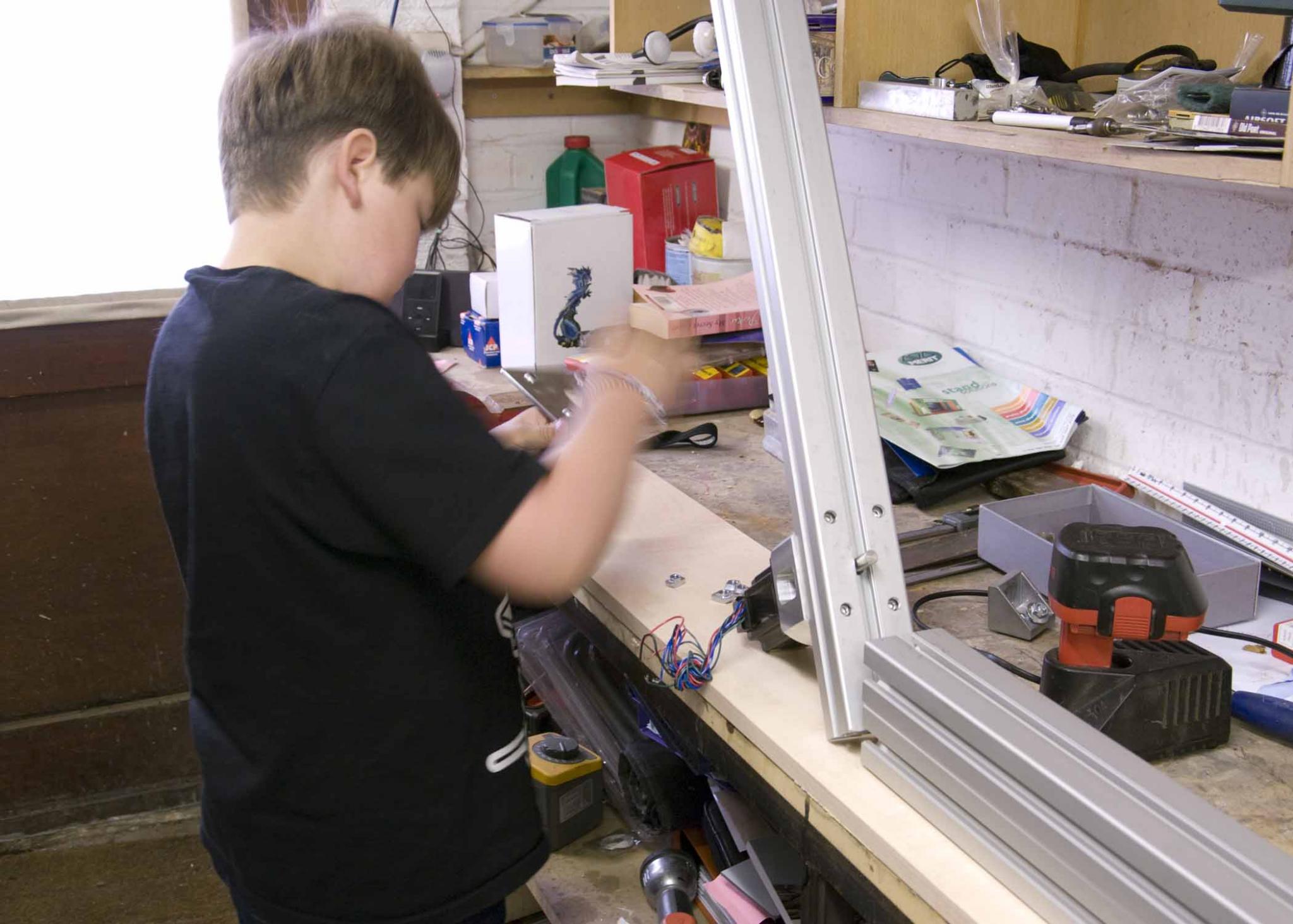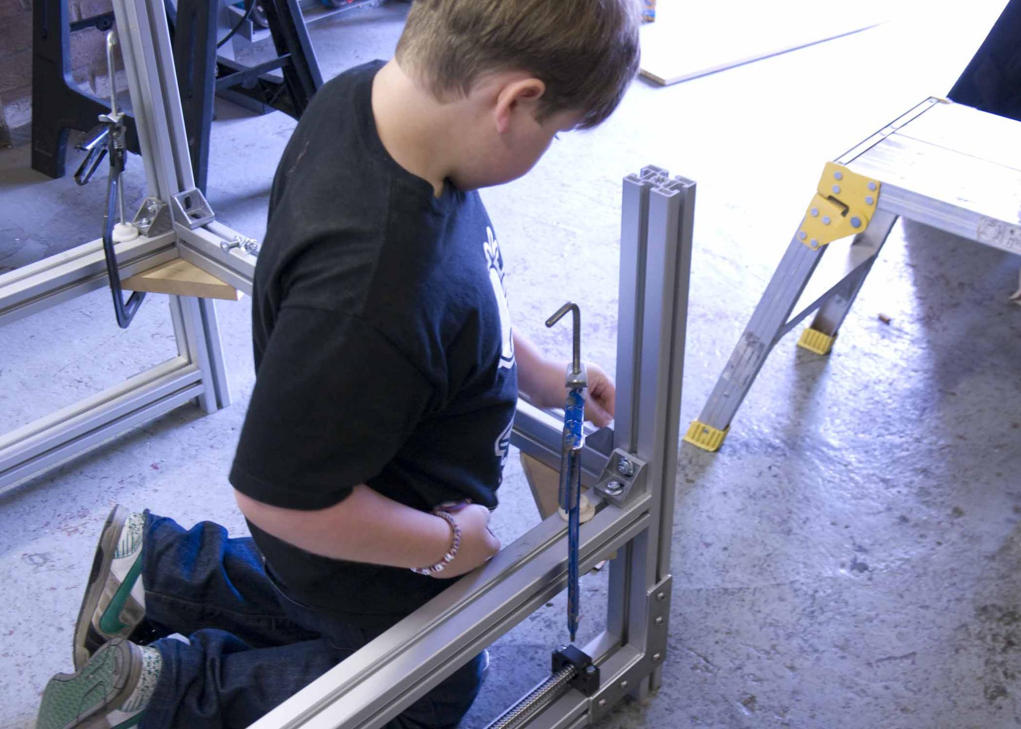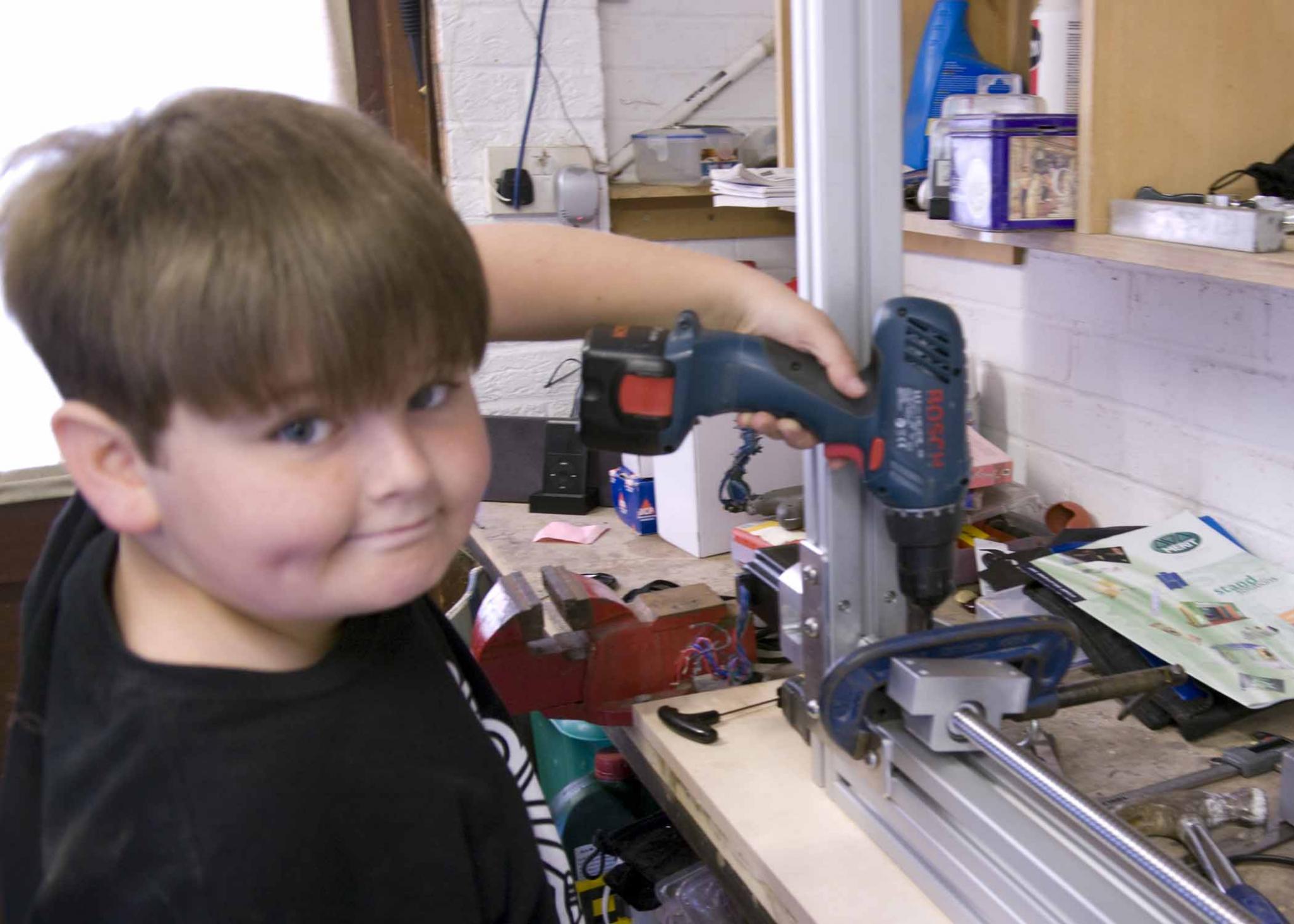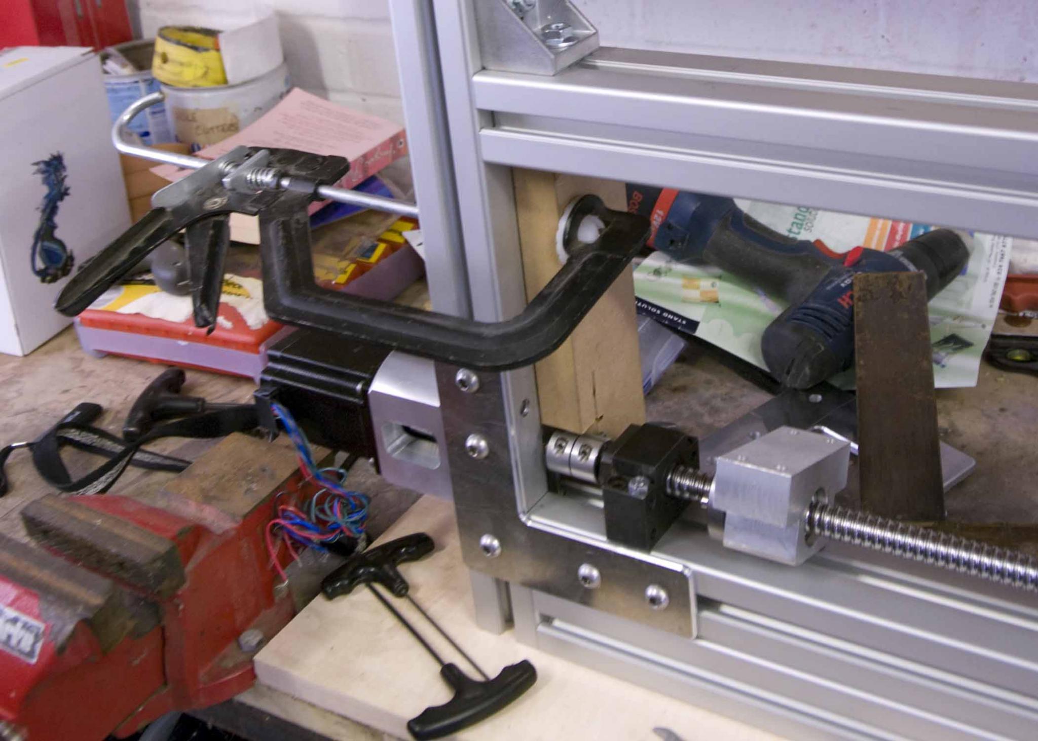 well Luke has been in the garage/work shop for most of the day drilling the legs ready for the stepper mounts