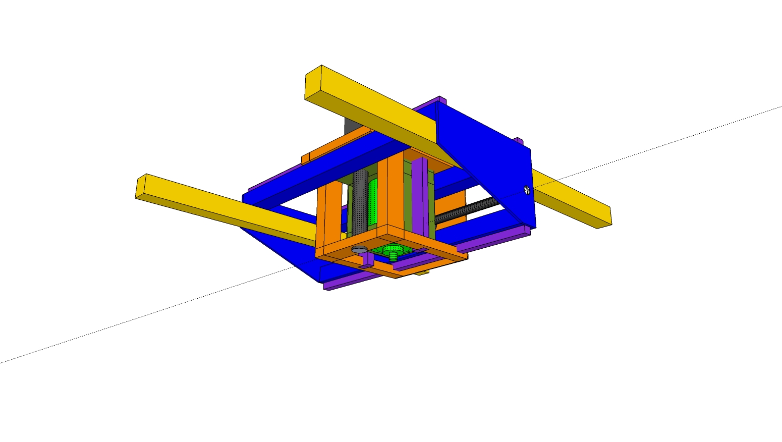 The good news is that the parts aquired list is getting longer! but the bad news is that the 900+ revisions of this design is not going to make it work. :-( Building a scale model exposed a major problem in the assembly phase. Which probably explains why I'd not seen others of that type of design. So, onto the mark 5.5! Nothing too ambitious this time. Fixed gantry and rotating head with 6 linear actuators to move the bed.