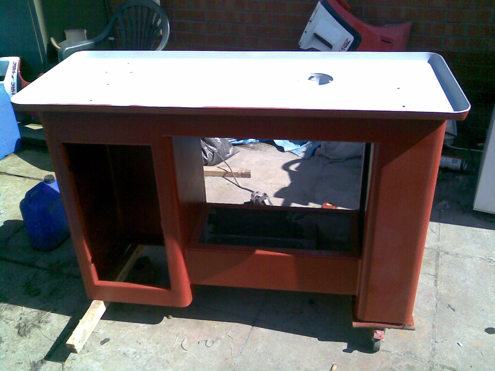you are correct, the center piece of the cabinet is a coolant tank, i will be making a cover for it with some aluminium tread plate and then mounting a pump directly onto the cover