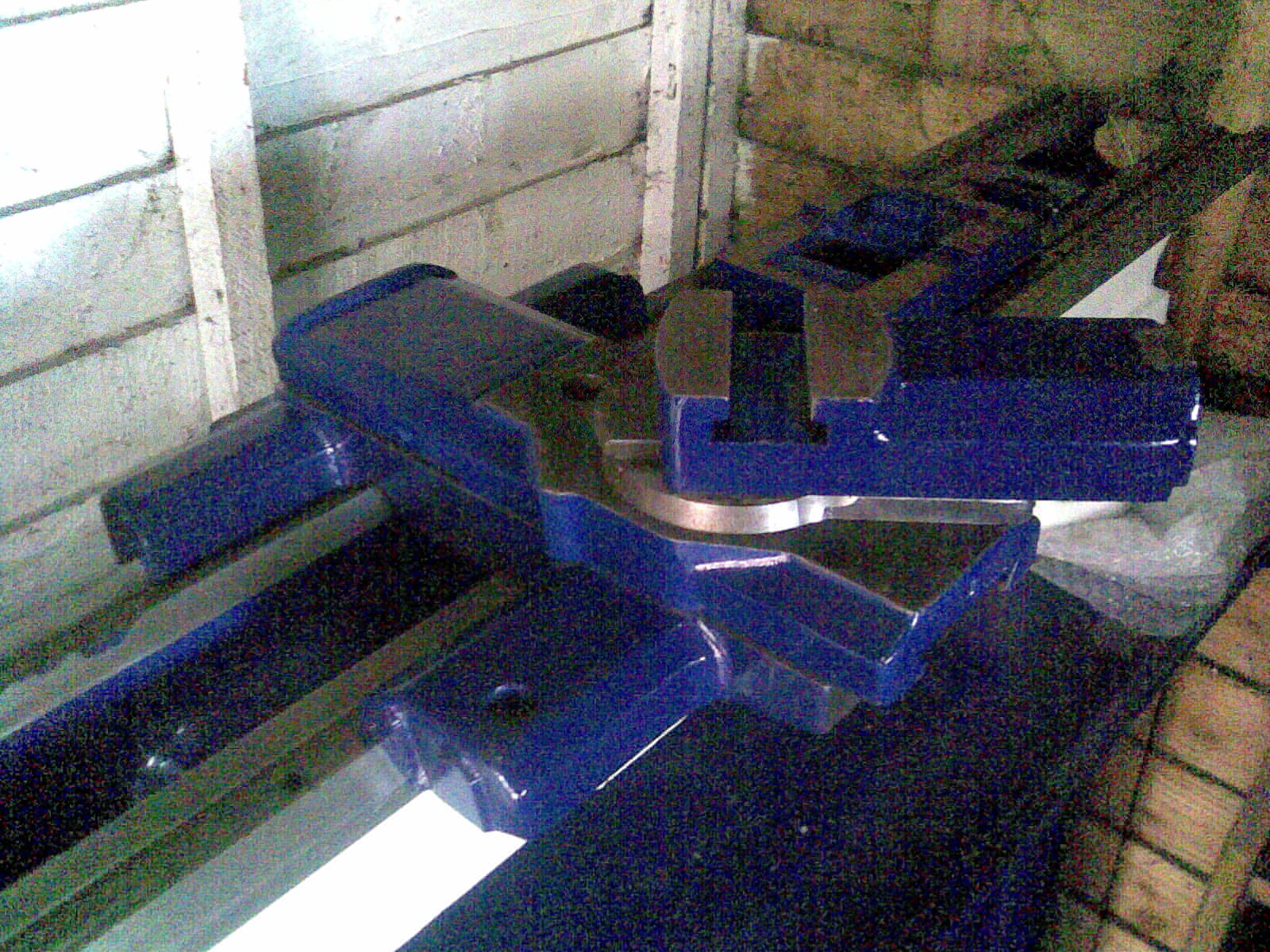 outside the shed we can see the change gear quadrant and tailstock casting receiving a good lick of paint