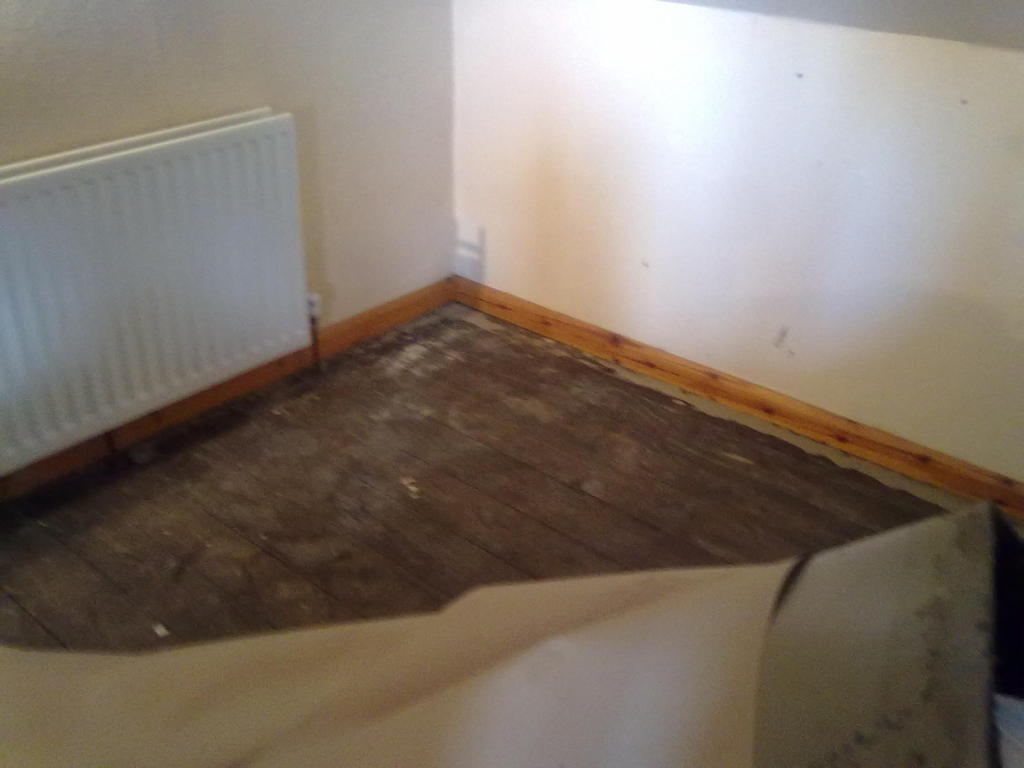 Hmm, I had a brief bit of time just now but only enough to move a bit of the carpet. No nails in sight and my plan to wiggle something between the boards hit a snag - there appears to be some kind of filler between the floorboards. Still, found one that was slightly looser and had a dig!