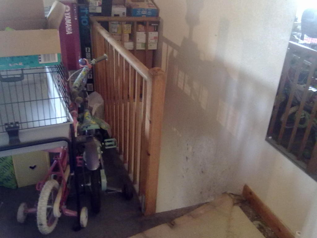 The stairs, viewed from the uncovered part of the floor. The joists I found would be roughly in line with this.