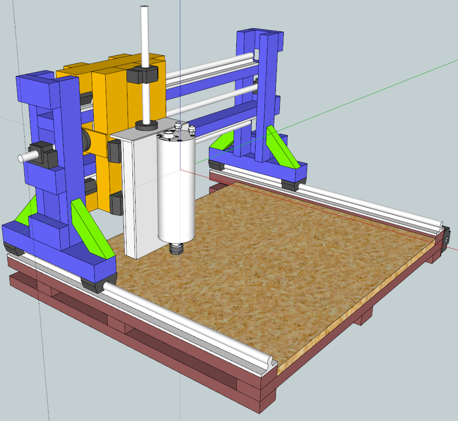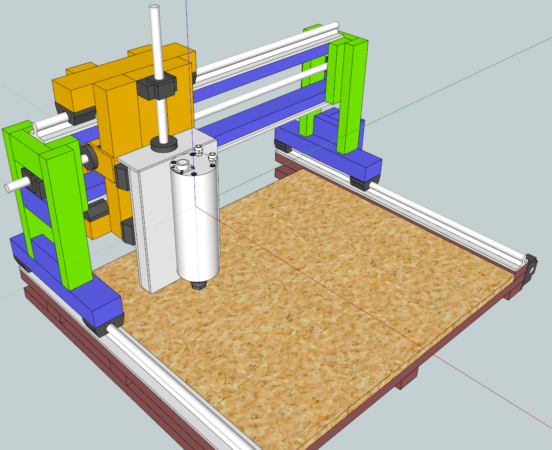 What are you planning on using for the bed of the machine? In the drawing it looks like wood...which is fine if you're mainly machining wood and plastics.