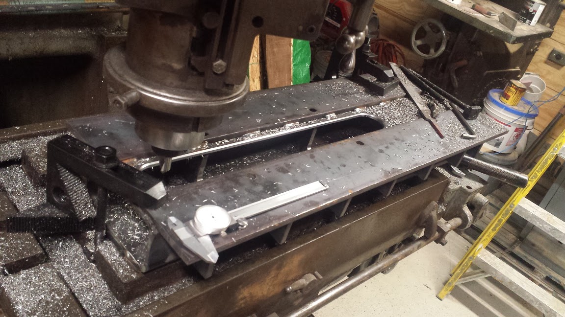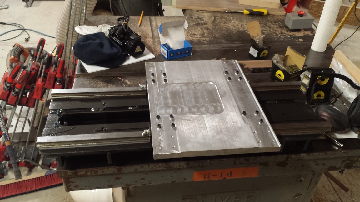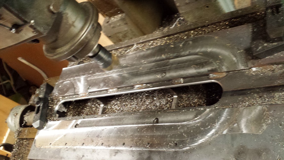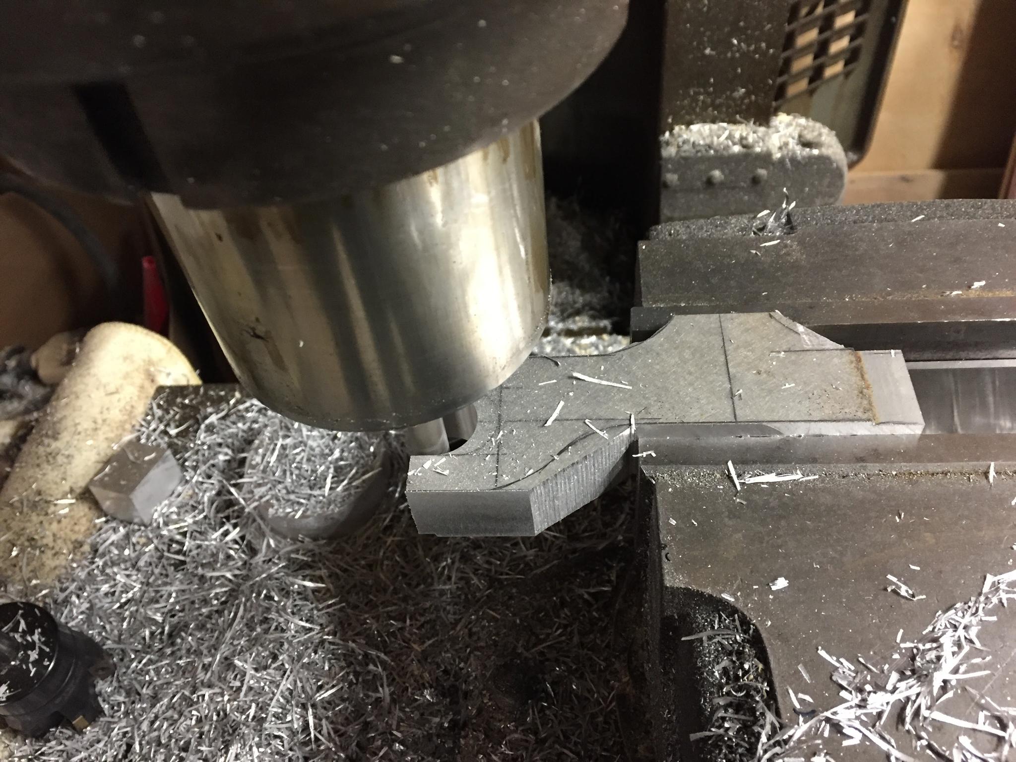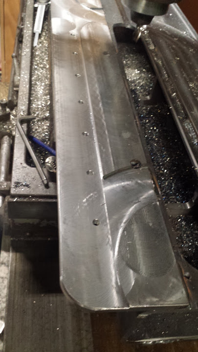 Begining the face milling process. I milled a linear reference for one of the rails. The curves are just the tool paths I had to take to make it all work as my mills travel isnt enough to do the whole thing in 1 pass.