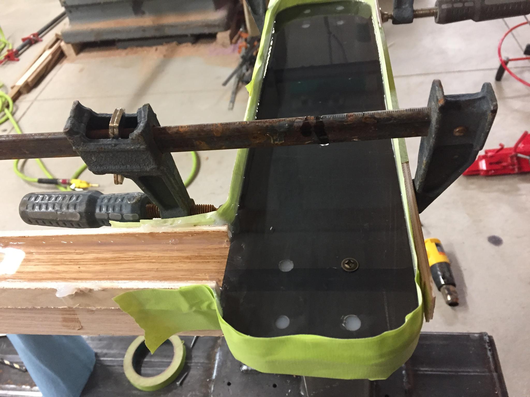 Internal view showing 2 internal supports. I figured these were needed to help keep movement to a minimum when I cut the large slot in the tube. They had to be driven in with a sledge as they were a little tight but I got them in. They are welded in place by drilling 3/8inch holes in the box tubing and then spot welding through those holes.