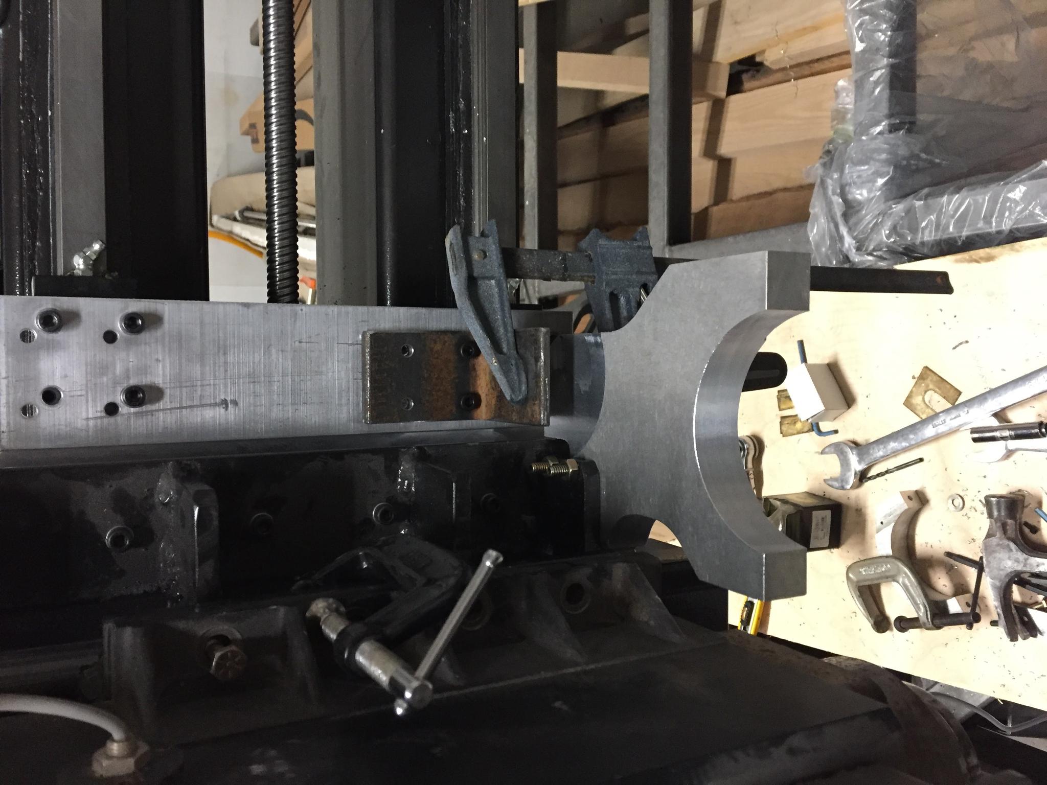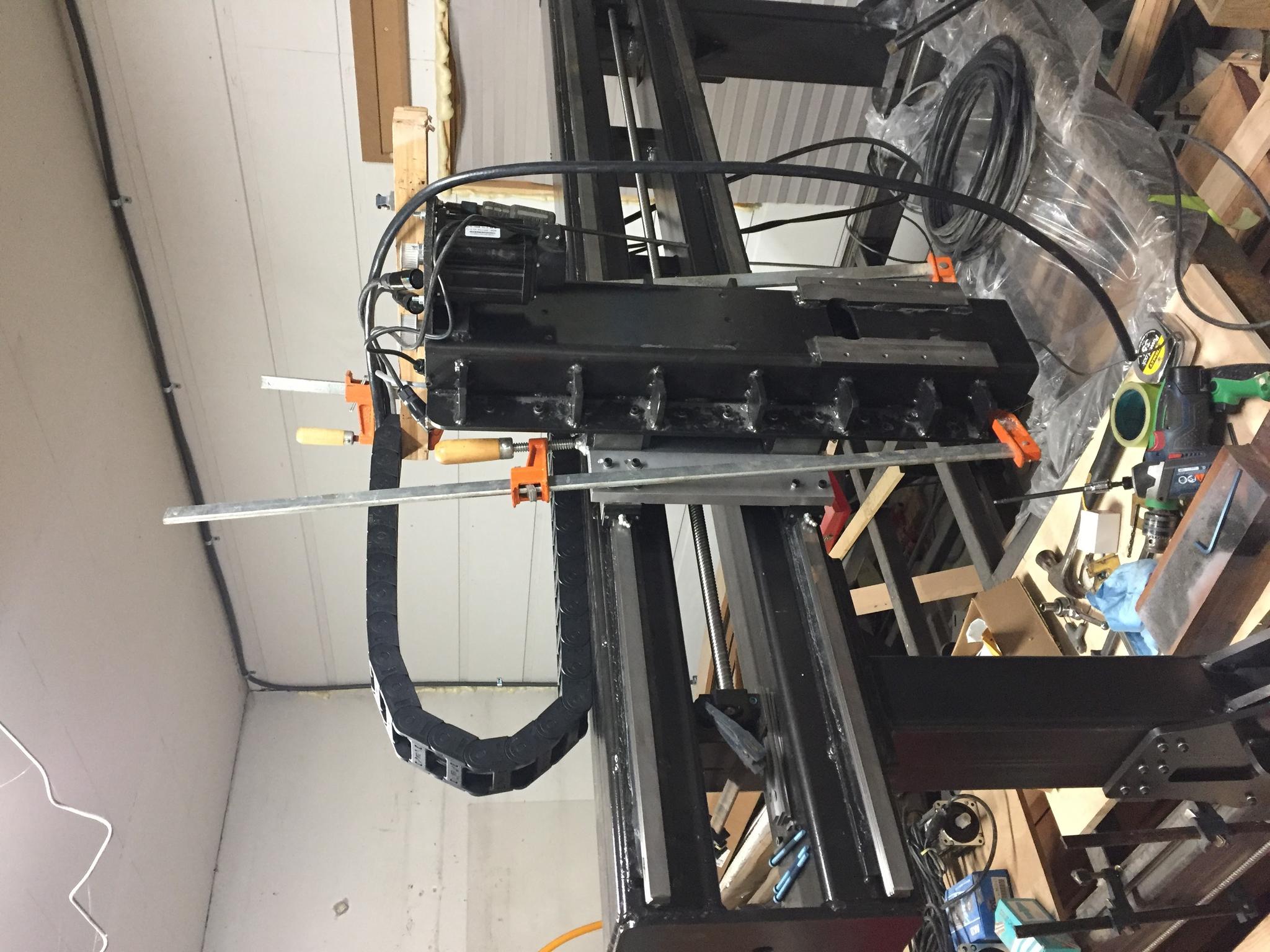 I got a bit done on the Z axis over the weekend. When I was laying everything out for the Z I decided that 4.5 inches between linear rails was not wide enough. So I welded on some 3/8inch plate in order to widen it to 8 inches center to center on the rails.