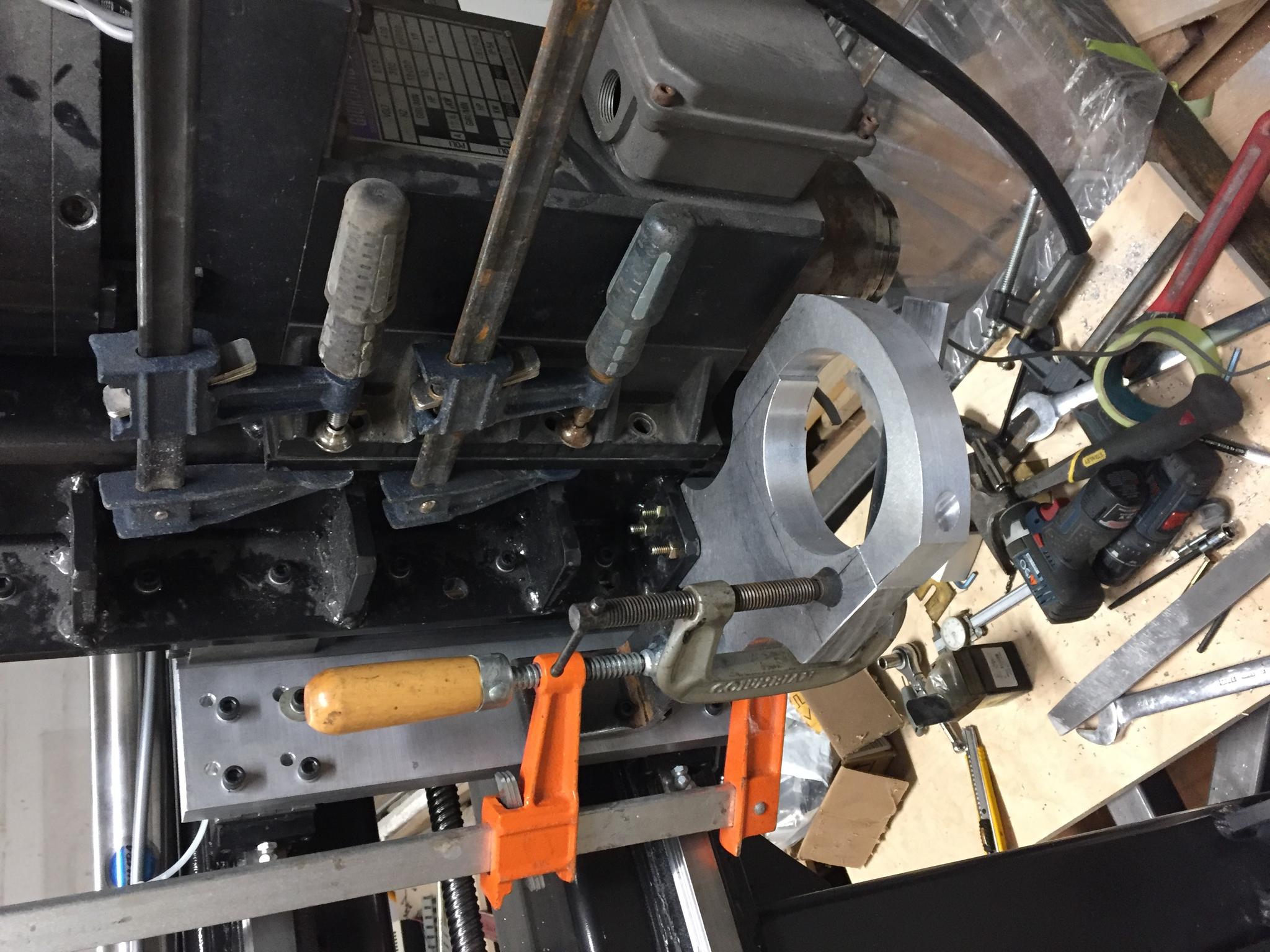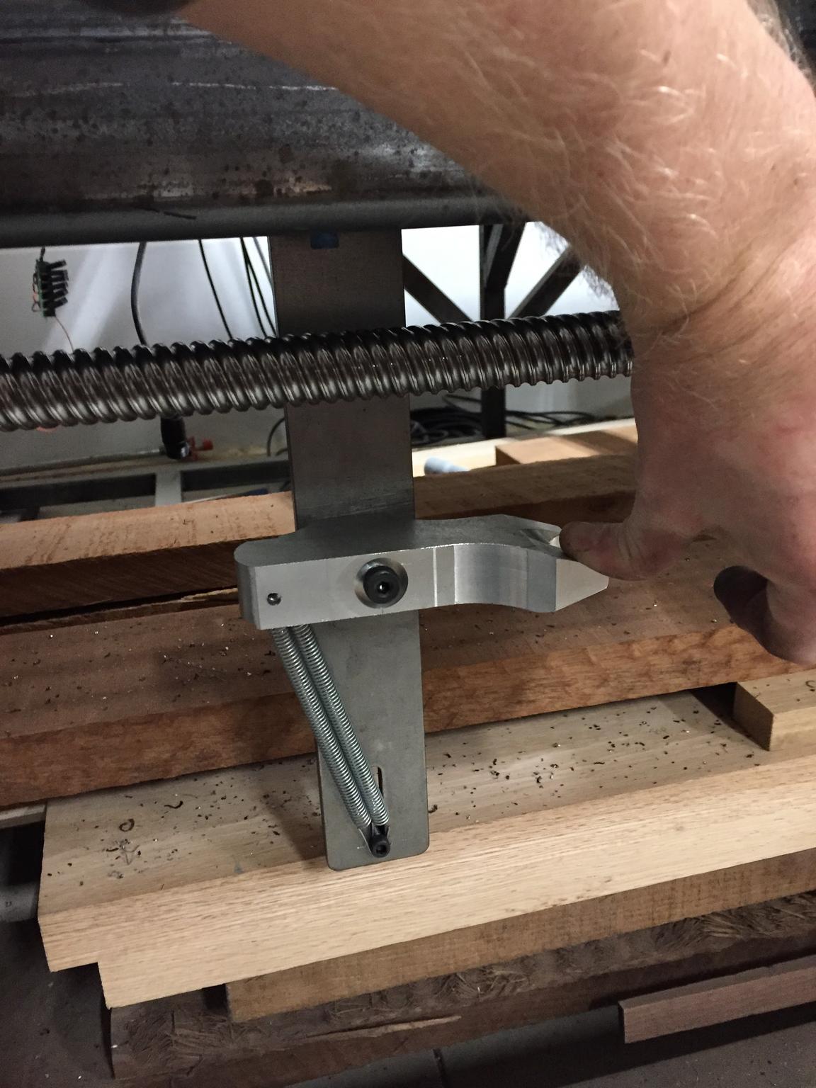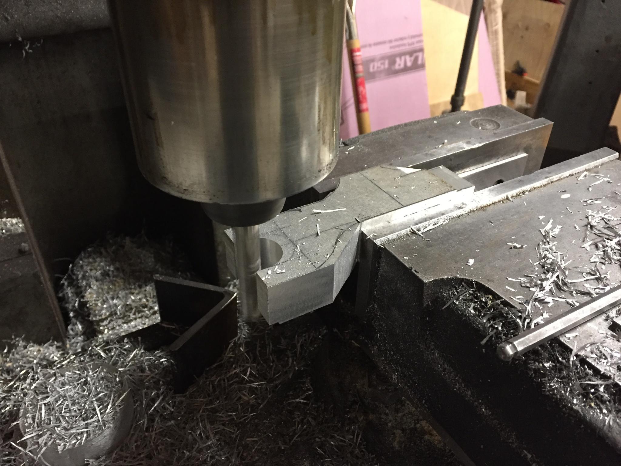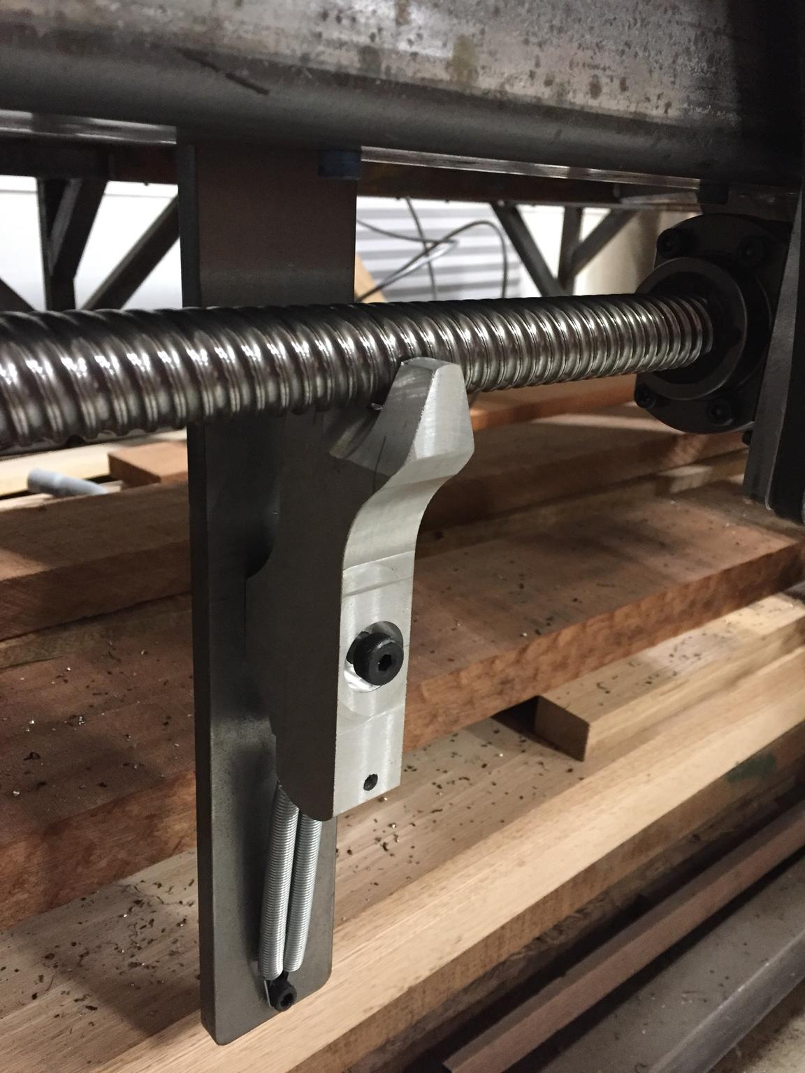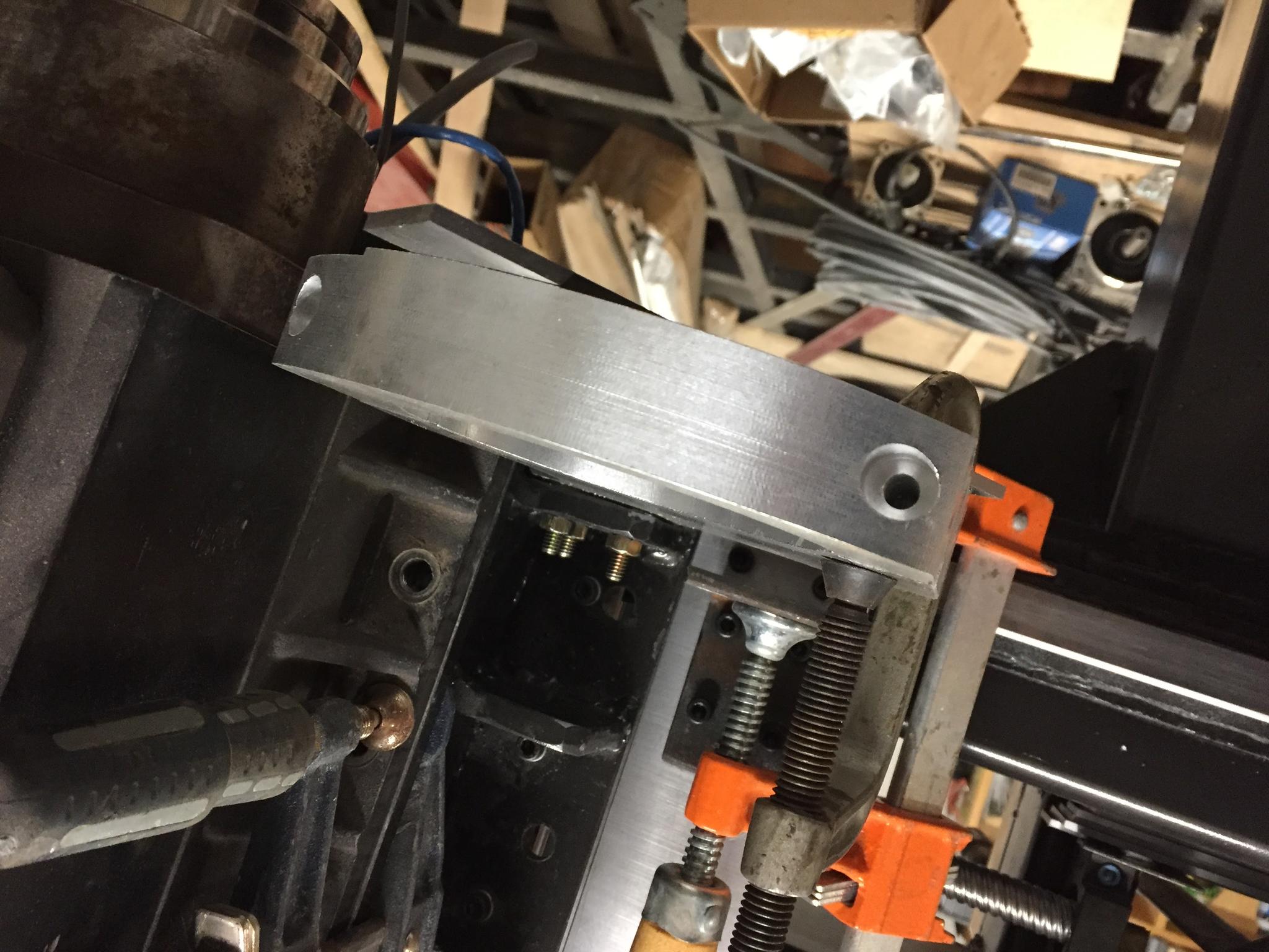 Here I am machining the spring loaded brackets that will act as X ballscrew mid supports. These will support the screw and when the gantry goes by will move out of the way on the pivot. I need to get some shoulder bolts still for these and do a bit more machining for clearance of the ballnut as it passes (to ensure that it cant get hung up on a change of direction).
