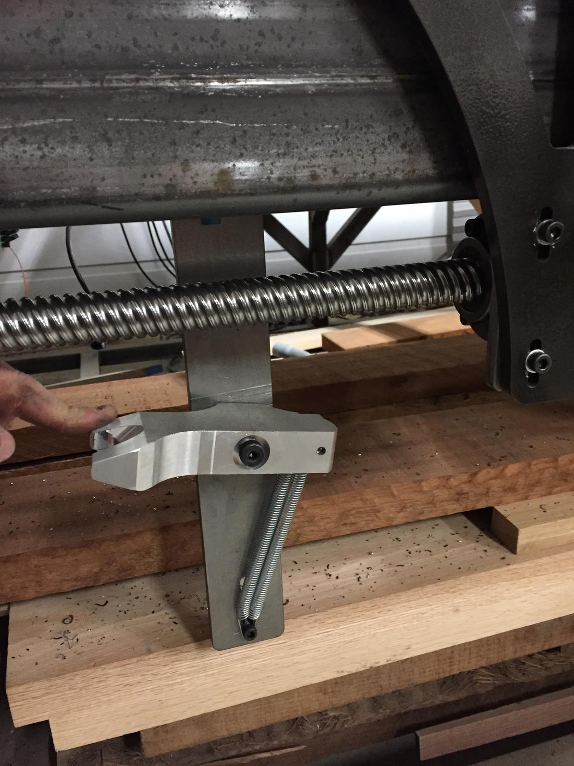 Some more progress made, I got the ballnut mount made and installed and also finished one of the ballscrew mid supports. I made a video of one of the ballscrew supports in action, I am just pushing the gantry back and forth. I pushed the gantry from one end to the other as fast as I could and this one support seemed to damp the ballscrew frequency. Im hoping to finish up this side tonight and then do it all over again on the other side.