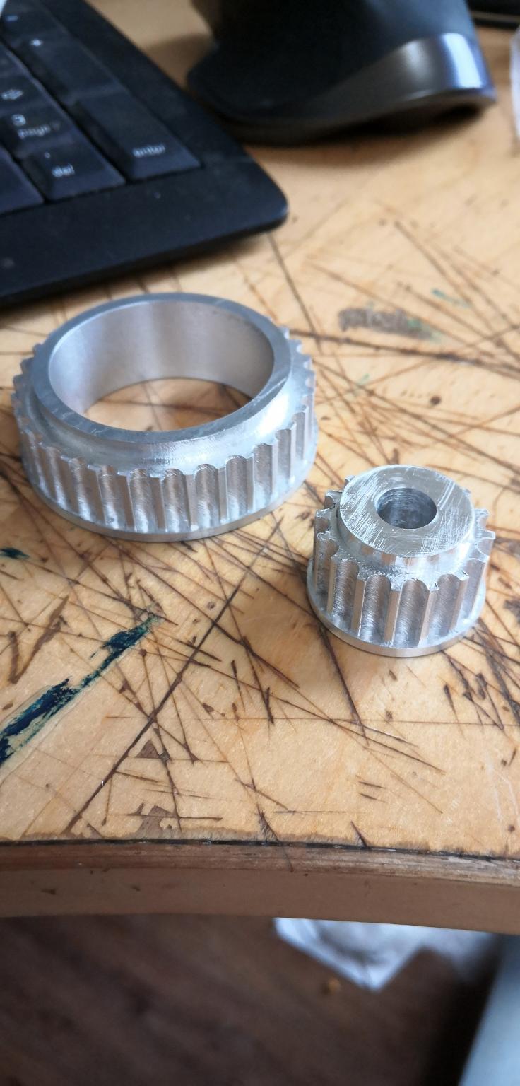 I just made it a baby brother, this one is going on an 8mm shaft with a 2mm shaft stuck in the end to go onto the encoder gearbox.