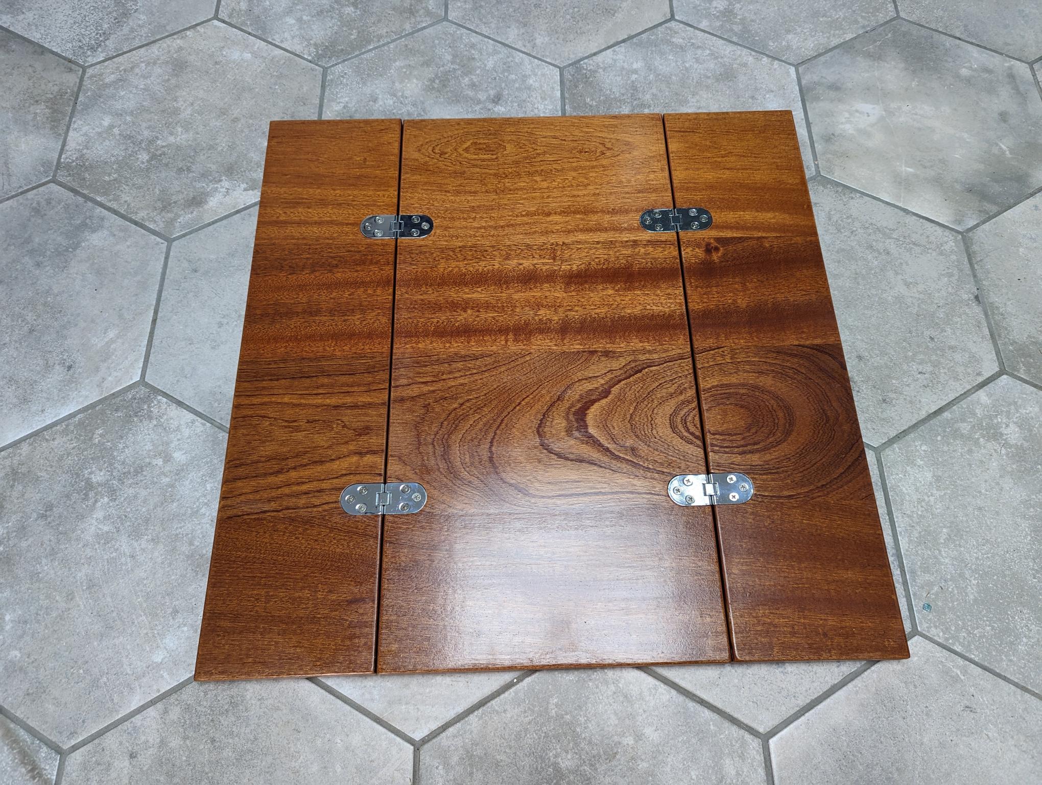 Being a sailor also comes with a drinking habit, so you also need a nice drinks table for the cockpit. We grabbed some appropriate plastic tumblers and used the CNC to carve perfectly fitting cupholders, and nicely inlay the hinges into some Sapele. The hardest part of this project was the varnish :/