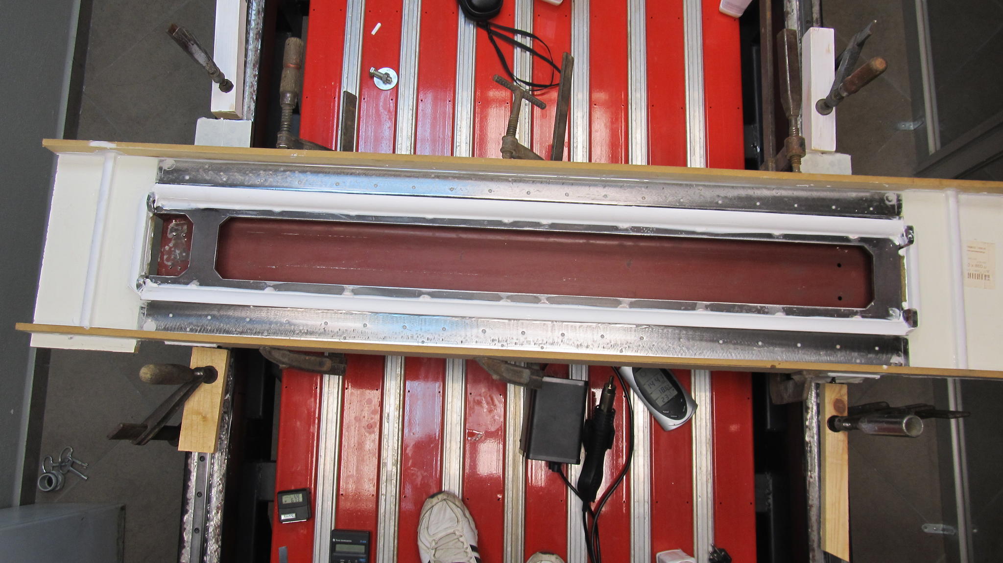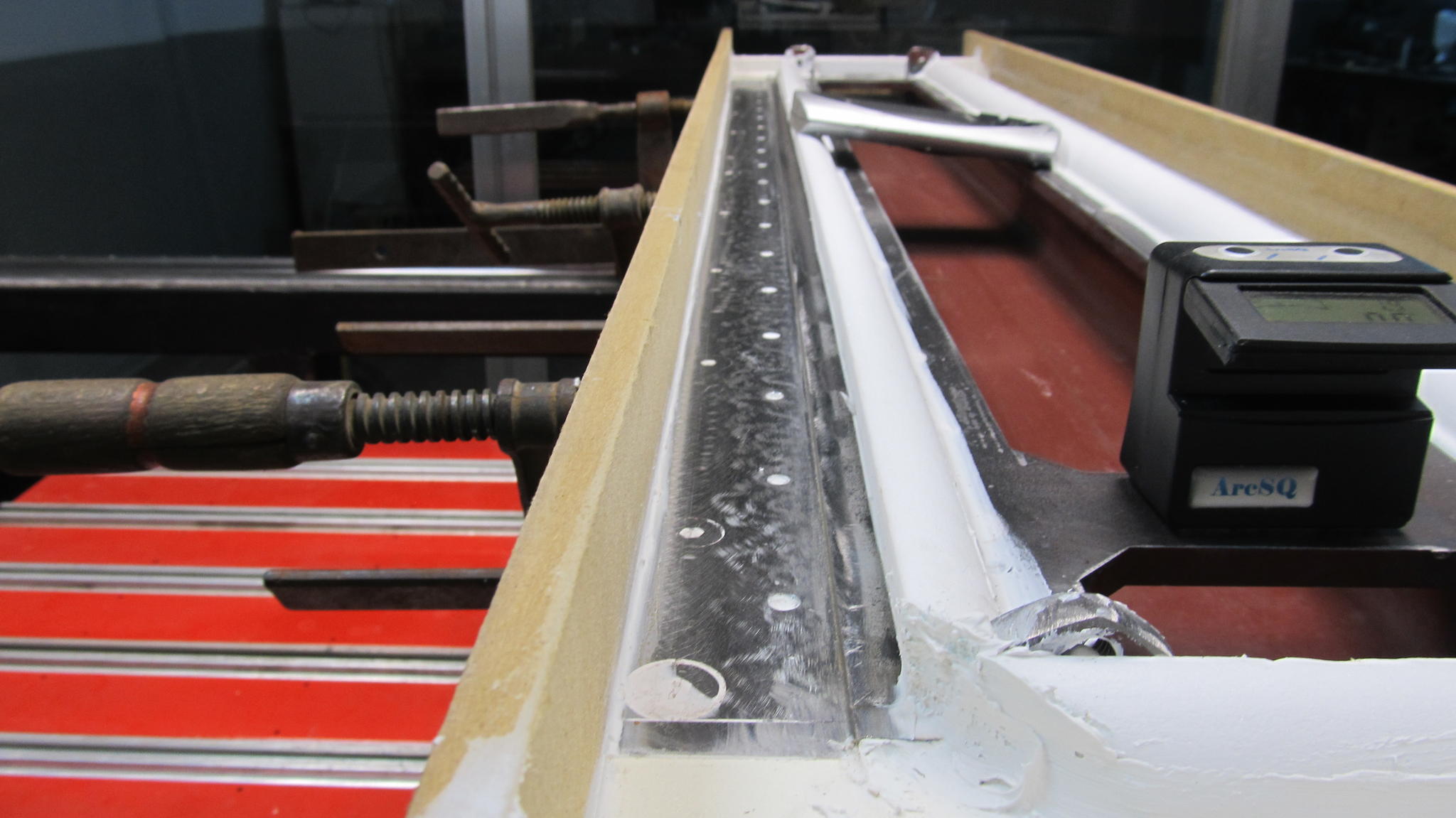 At the first epoxy try the groove had been covered with epoxy so the epoxy had 5mm thickness above the groove and 2mm thickness next to the grove. So this uneven surface may cause the failure of the first try. That is why I decided to go with two layers casts. The first one will cover the big error so that the second one will do the level job better. I don’t remember where, but I had read that in some way the epoxy follows the initial surface and corrects a big part of the surface error, but not all the error.