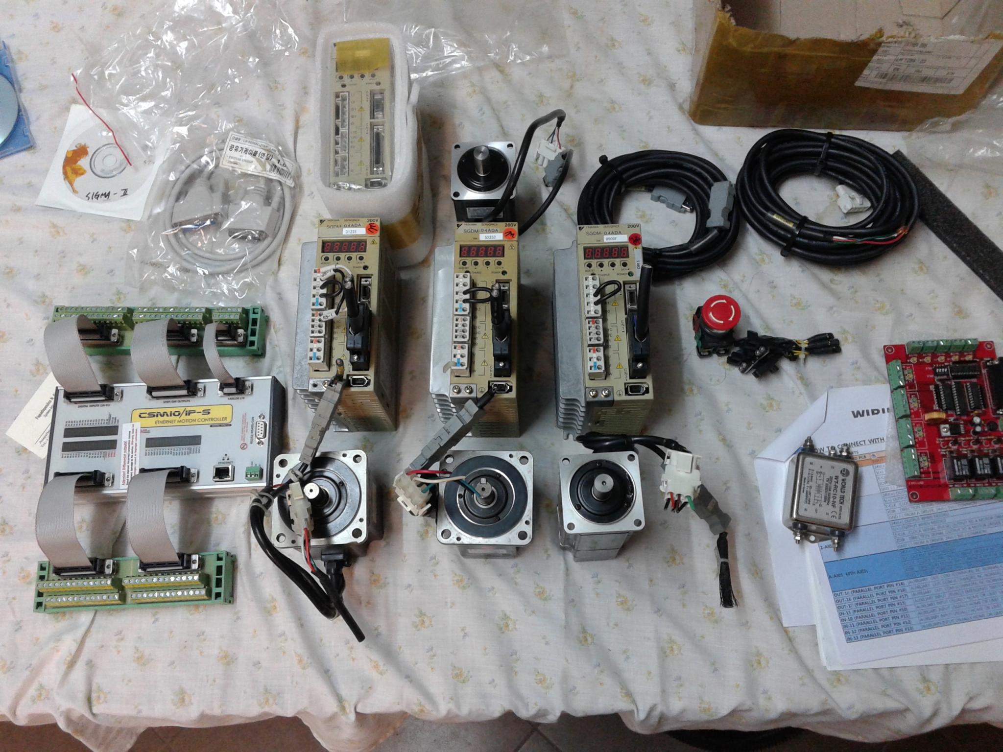At first I was planning using three motors (one each axis X,Y,Z) so I bought a set of three Yaskawa servo motors 400 watt, one of them with brake. After many suggestions and advices I finally bought another 200watt Yaskawa for Z so I have