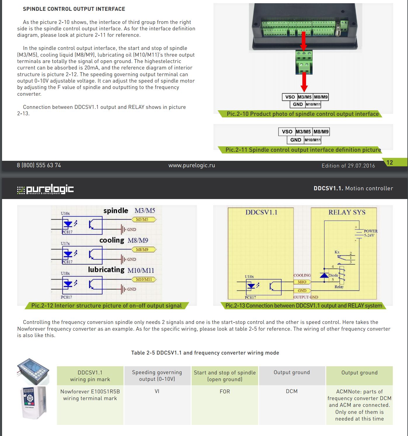 Yes i figured it out. You have to wire it as the manual, however the VFD is slightly strange as you have to ground both the ACM & DCM (Analogue & Digital Grounds) to each other. A bizarre occurrence to me, not sure what the Chinese logic is behind it but it works. I can now control the M3/M5 commands and set the speed from the DDCSV1.1.