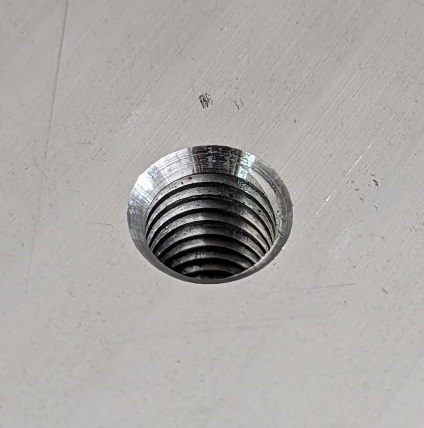I decided to just do it, I wasn't going to tap them by hand so I purchased a thread cutter for M6. The bed is made of 20mm cast aluminium plate, since there was only one chance to get this right I tested all the feeds and speeds on some scrap identical plate first. This was the first time I have used a thread cutter and you must dial in the toolpath first to get the type of fit you want on the bolt (basically change the diameter by 5 microns until happy). I'll give some details of the feeds and speeds to help anyone else processing similar material with a 2.2kw chinese spindle on a job that cannot be messed up.