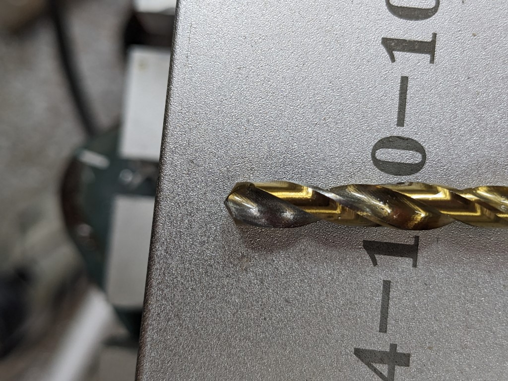 Sprayed some WD40 on it for each hole. This created nice shiny round holes, bit was still like new afterwards, not bad for something that probably cost a few pence.