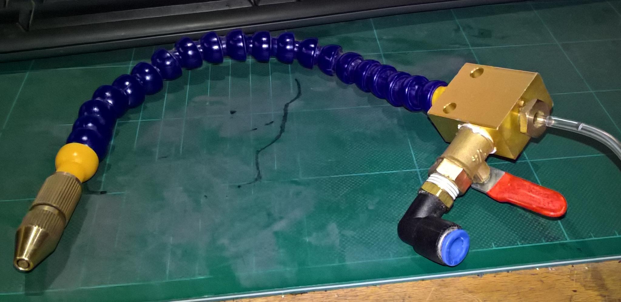 I have a chinese mister Attachment 19664, which cost about a fiver and I have a project to use an arduino to control a peristaltic pump (which I 3D printed a short while ago) and an air solenoid valve. I intend to see what separate bursts of air and fluid is like for clearing chips and then dispensing coolant. I have all I need for the experiment, except my health has taken a downturn for the time being, but I want to get some progress on it.