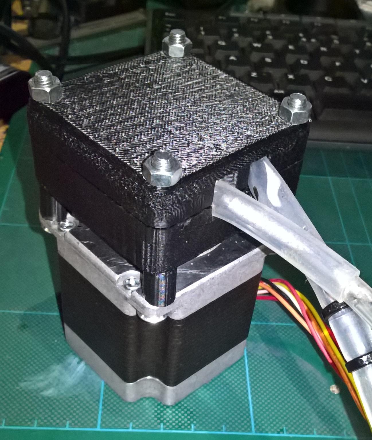 Attachment 19665 This is the pump, it basically massages the fluid though a soft tube, like the muscle action in our guts that keeps 'everything' moving. With a stepper to drive it, you can get very precise doses at high (ish) pressure.