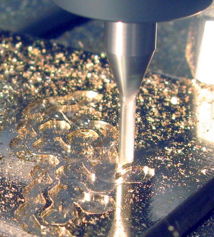 The machine purchased was specifically stiffened for cutting brass; at least, that's what they told me, there was an extra stiffening bar, out of sight up-top in the picture of the machine above, for this purpose. I have a feeling that the mess you see on that last picture is because the tool had degraded by that point and hence was rubbing. If the machine were too sloppy, I'd have thought the same mess would appear early on as late on (see right-hand side of middle picture versus left-hand side)? Maybe a better question would be: could lack of machine rigidity somehow cause damage to the cutting edges of the bit?