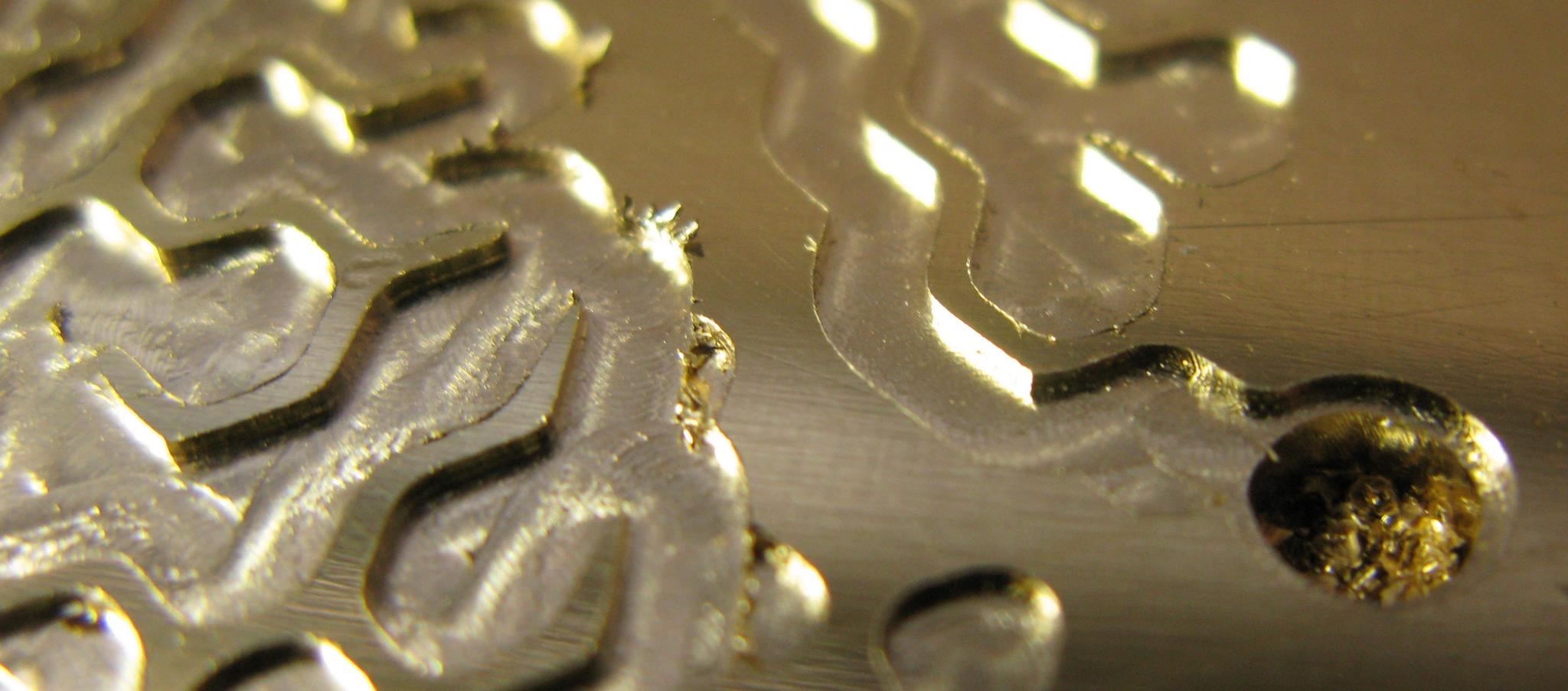 To conclude this thread, I've now managed to cut the brass maze successfully. The secret was, as you probably expect, cooling. With a 1 mm internal diameter copper tube backing 2 bar of air pressure (no water, too messy for my loft) from a Jun Air compressor, cutting for 10 hours caused no damage to the bit whatsoever and the finish in brass is as good as that in perspex. I only applied the cooling during the looong cut around the side of the maze so as not to overheat the compressor but that was enough. Happy milling Christmas everyone!
