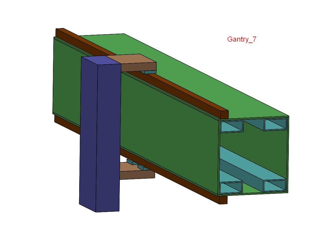 But there is a problem. My original estimate for weight for the gantry was 40Kg. The weight estimate for this new much stiffer gantry configuration is 100Kg. My question is: Is a 100Kg gantry a problem? The math says I need a stepper that can deliver 1Nm up to 600 rpm to power the two X axis ball screws that move the gantry. That is with a factor of safety of 2. Stepper size looks doable. Does a gantry of this weight pass a reality check?