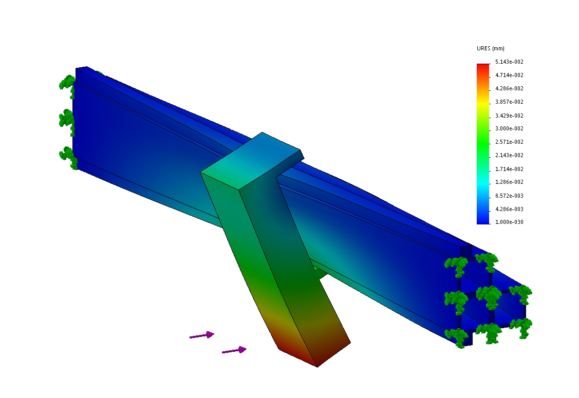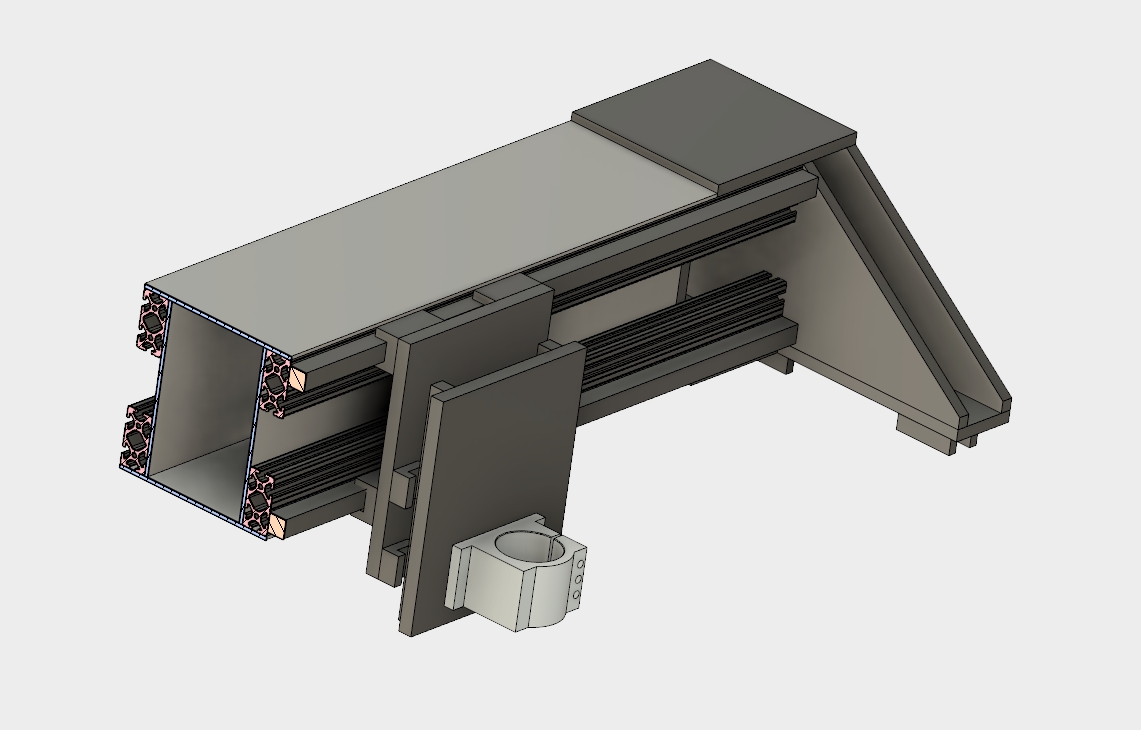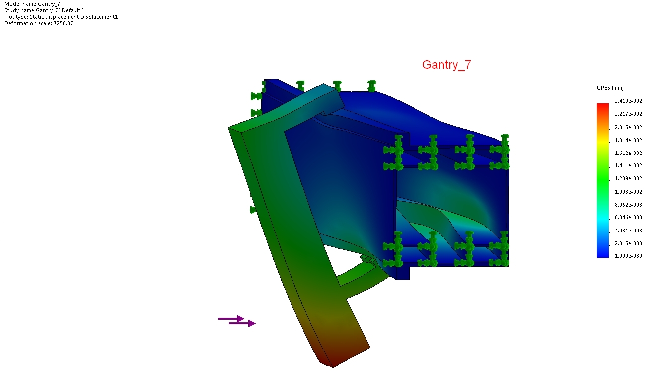 New gantry layout using three 76mm x 76mm T-Slot extruded aluminum beams in an "L" configuration. Based on the FEA above.