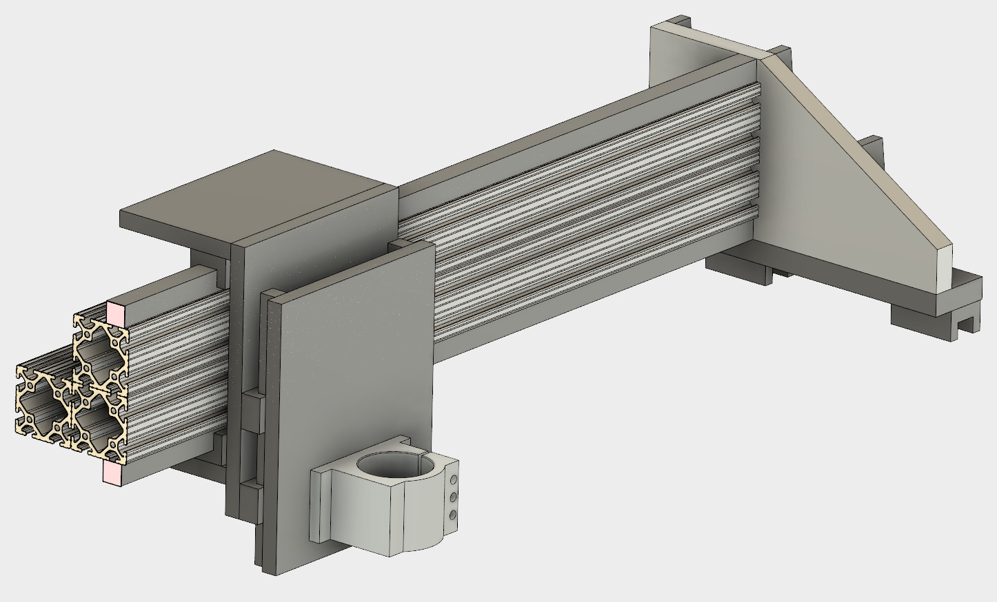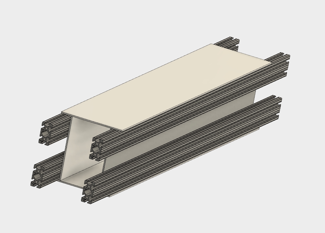 I'm intrigued how you ended up with the design in post #22. That thin wall, and very open box section looks like it will resonate in practice, and the intermediate extrusions (to space away for the ballscrew?) are going to flex locally. The ends look fairly tricky to build and maybe a bit complicated.