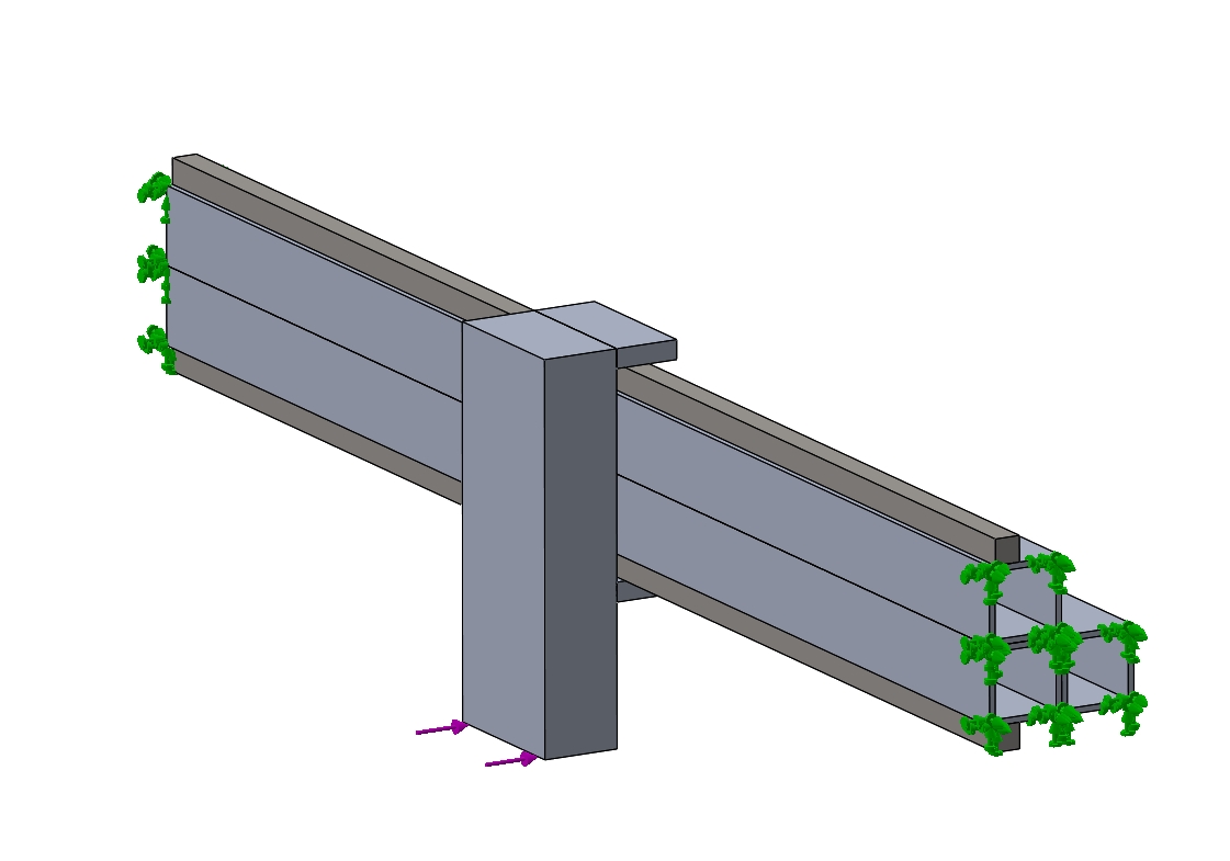 The box beam gantry configuration is the stiffest design. But having fought resonance before I do not want to do it again. Scared of those large thin sides of the box. And the 100kg weight of the model. So tried another iteration. This time its a simple "L" beam made of the three 3in x 3in 80/20 extrusions. Ran the math and while it is half the stiffness of the boxed beam it is still over twice as stiff as the original twin separated beam gantry design. Comparison deflection metric is 0.05mm. Going with this.