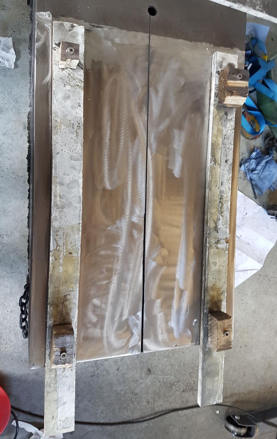 I then flipped my surface plate and lowered it onto the base. It wasn't that far off, you could see damage from the previous owners of the surface plate.