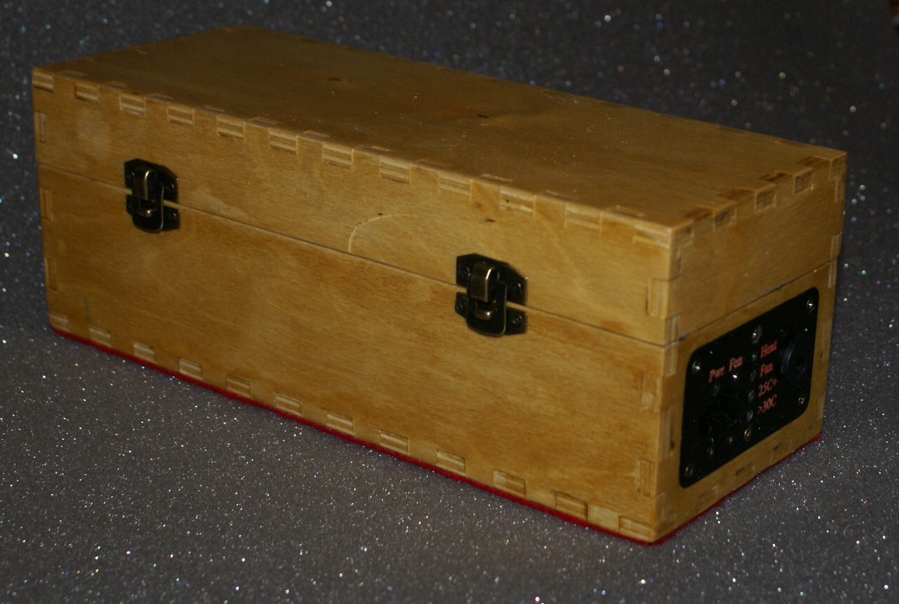 The box is just plywood, my next harmonica heated box will be perspex with fused mitred joints. I have yet to play with vacuum forming for the interior moulding.