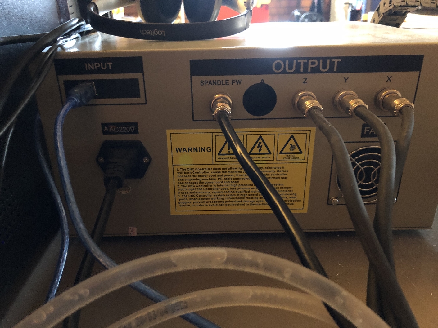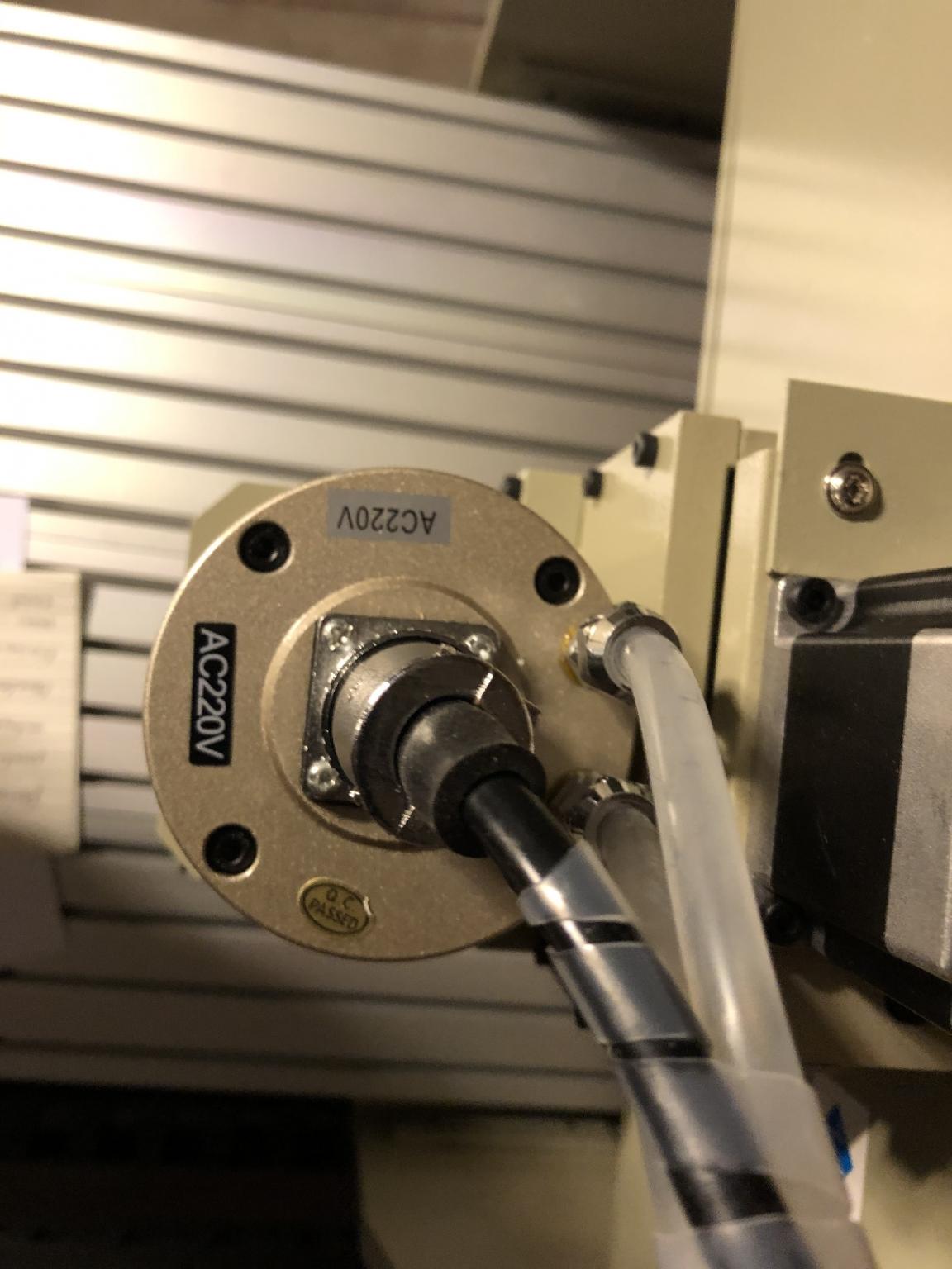 Re. connecting the spindle to 220VAC directly, or through a speed controller - it's *probably* a three-phase spindle and so you need a 3-phase inverter with variable frequency drive give variable speed. If you follow the ribbon from the front panel control on the white box to a larger control board in the enclosure that will be the integral 3 phase inverter - so you already have this.