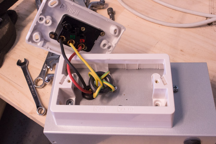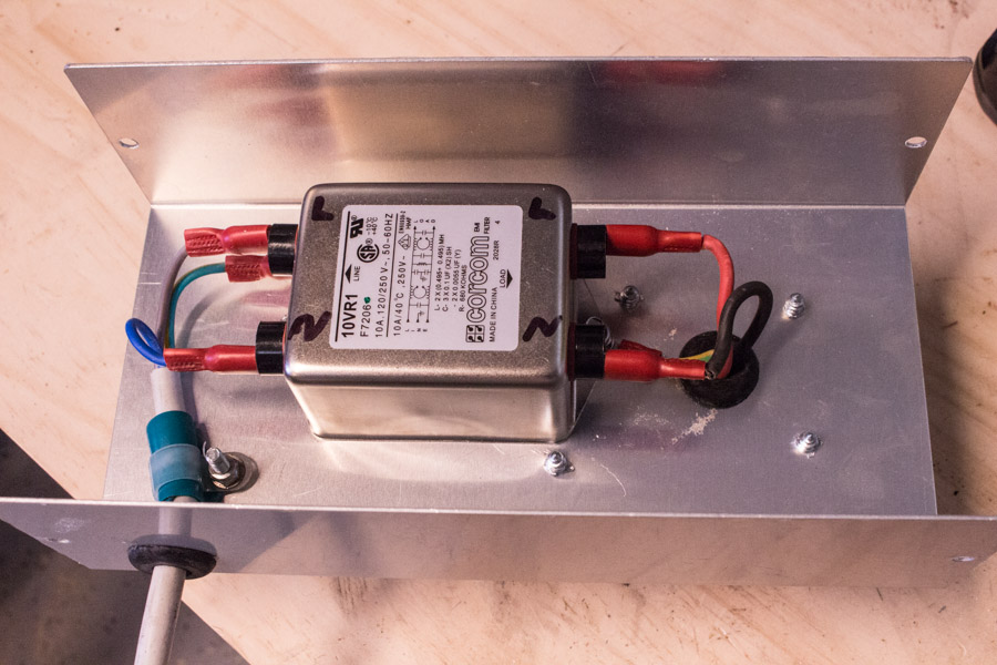 Investigations with an osilloscope make me sure the problem is leakage from the VFD mains wiring. The scope shows very spikey noise all over the earthed case of the controller, the PSUs inside it, the BOB supply rails and all the terminals on it as well when the VFD is running. Changing the timescale shows each pulse to be a burst of several cycles of about 6MHz. This could be a fast edge triggering ringing somewhere but I can't delve that deep. Using a more remote mains socket for the VFD fixes the fault, though I have not measured the change in noise inside the controller. Further investigation of the cause would be an interesting project but I don't have time for that, I just wan't the machine working! Fingers crossed the mains filter, possibly with some filtering on the earth lead as well, will sort it out.