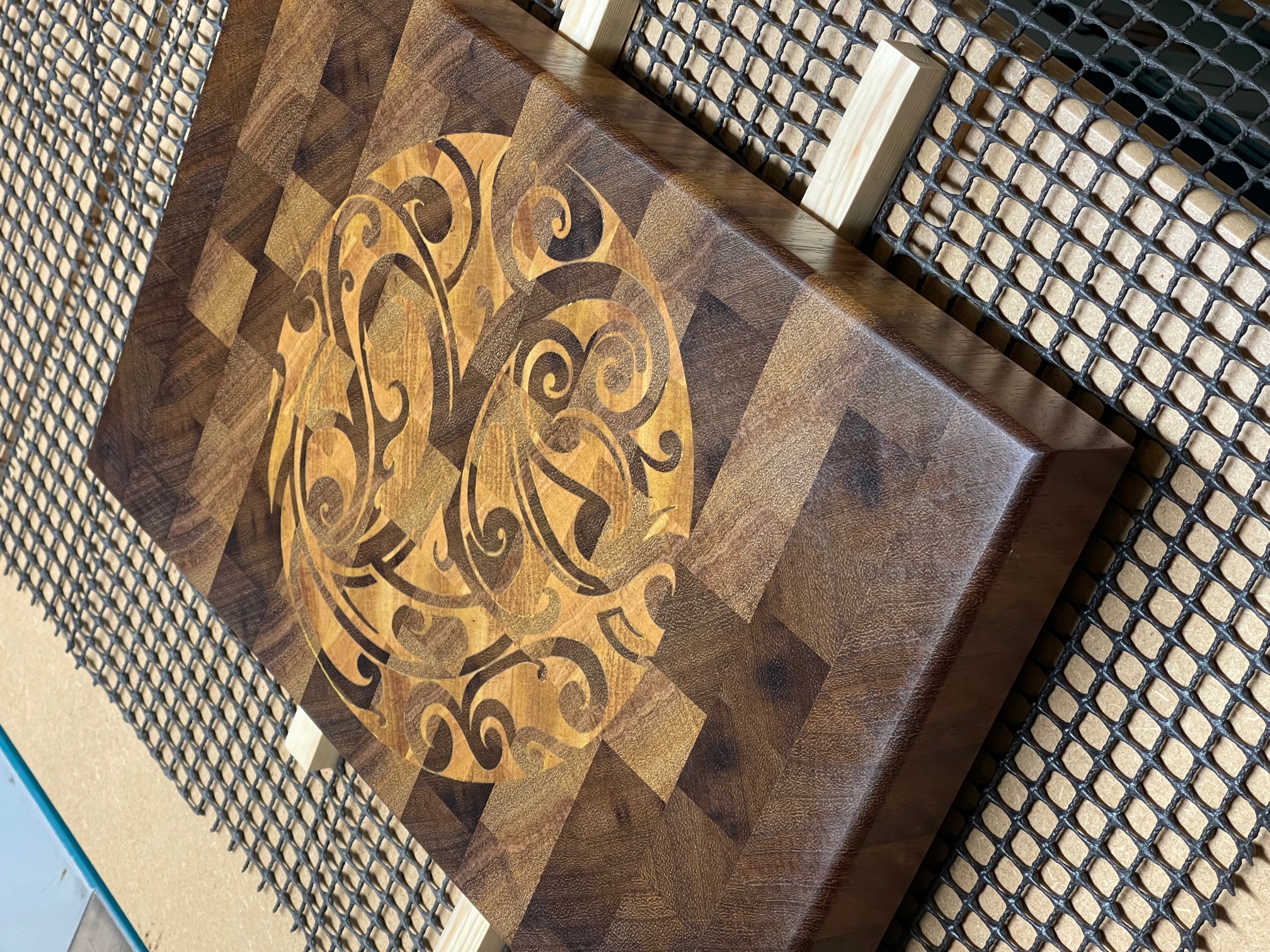 Lovely inlay in that end grain chopping board, Pilsbury. As Kitwin says also a pretty good test of the machine too. What sort of feeds and speeds did you try?