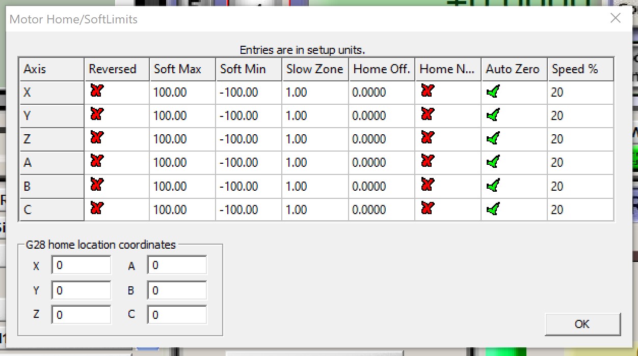 That leaves me with just one issue; the limit/home switches don't work unless virtual limits are set. If I lose my initial datums for some reason (light smashing into the part) I have to start again because I have no references.