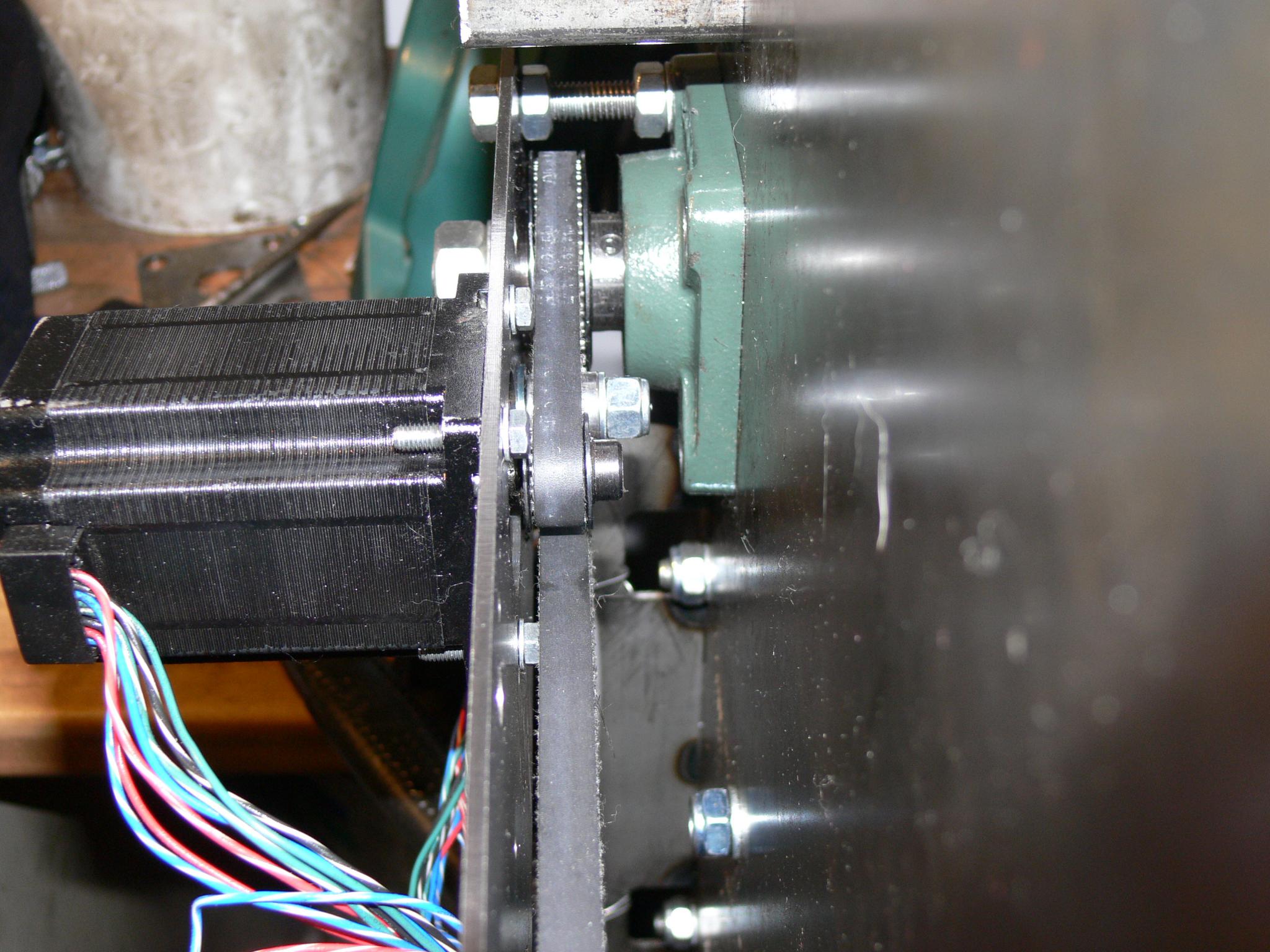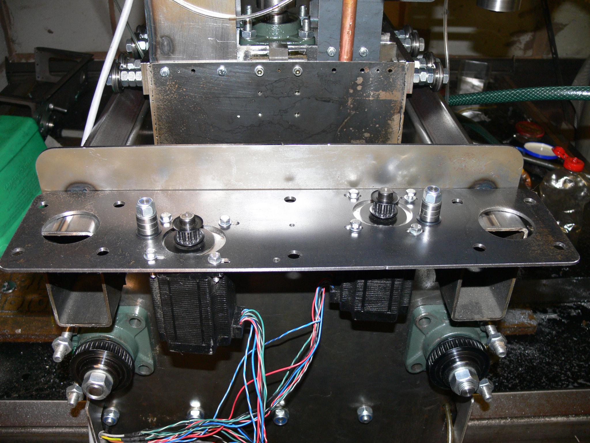 That looks neat. I can't really think of a good reason why, but having both motors running on the same belt doesn't seem like a good idea. Why not just have one going to each ballscrew? At the very least that means shorter belts, so lower inertia (probably negligeble). I guess the only thing it gains is preventing racking occuring.