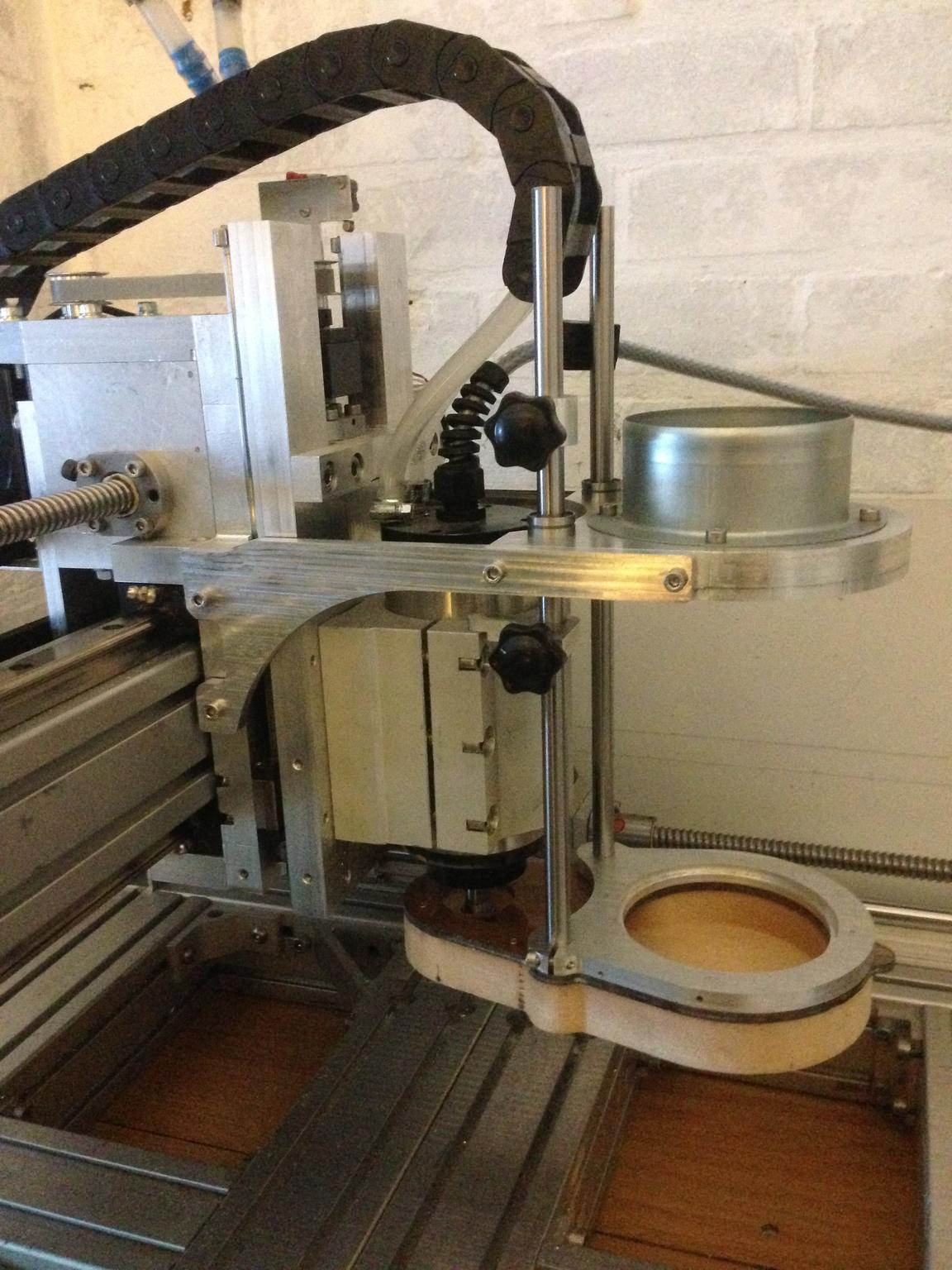 Before you ask - no I still haven't measured the stiffness of the new machine! But I have managed to make progress on the semi-automatic dust shoe system, and as you can see it is making nice cuts in aluminium.