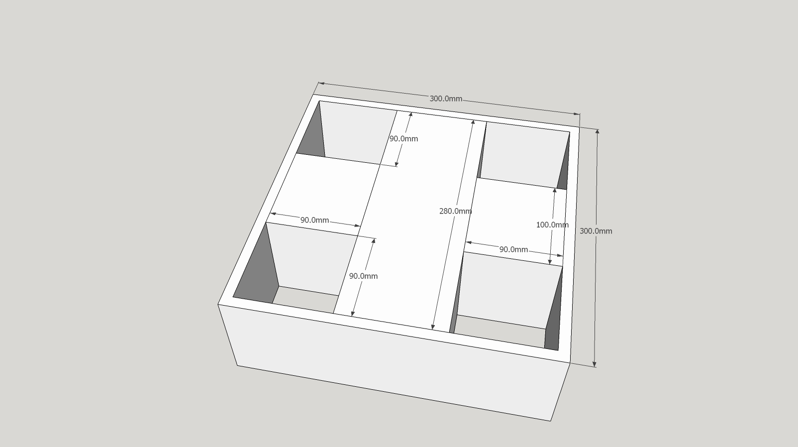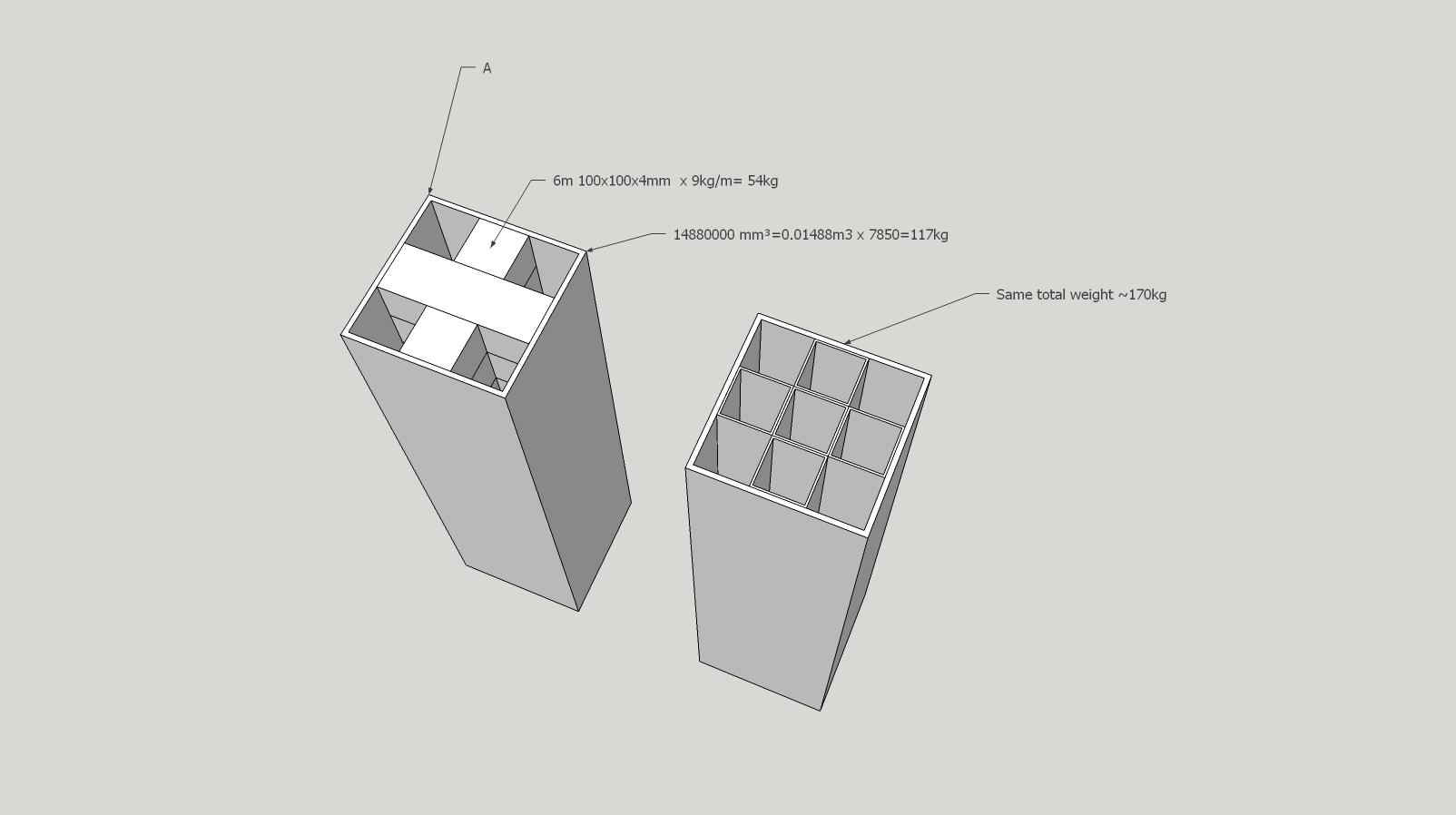 3. So the final result , now taken in account the cut loss when cutting the 6m beam. Additional benefit is that can be used plates 100x10, for ease of soldering. So final size 300x300mm. Weight can slide at the back or additional extension of the plates could be made, without compromising the basic structure.