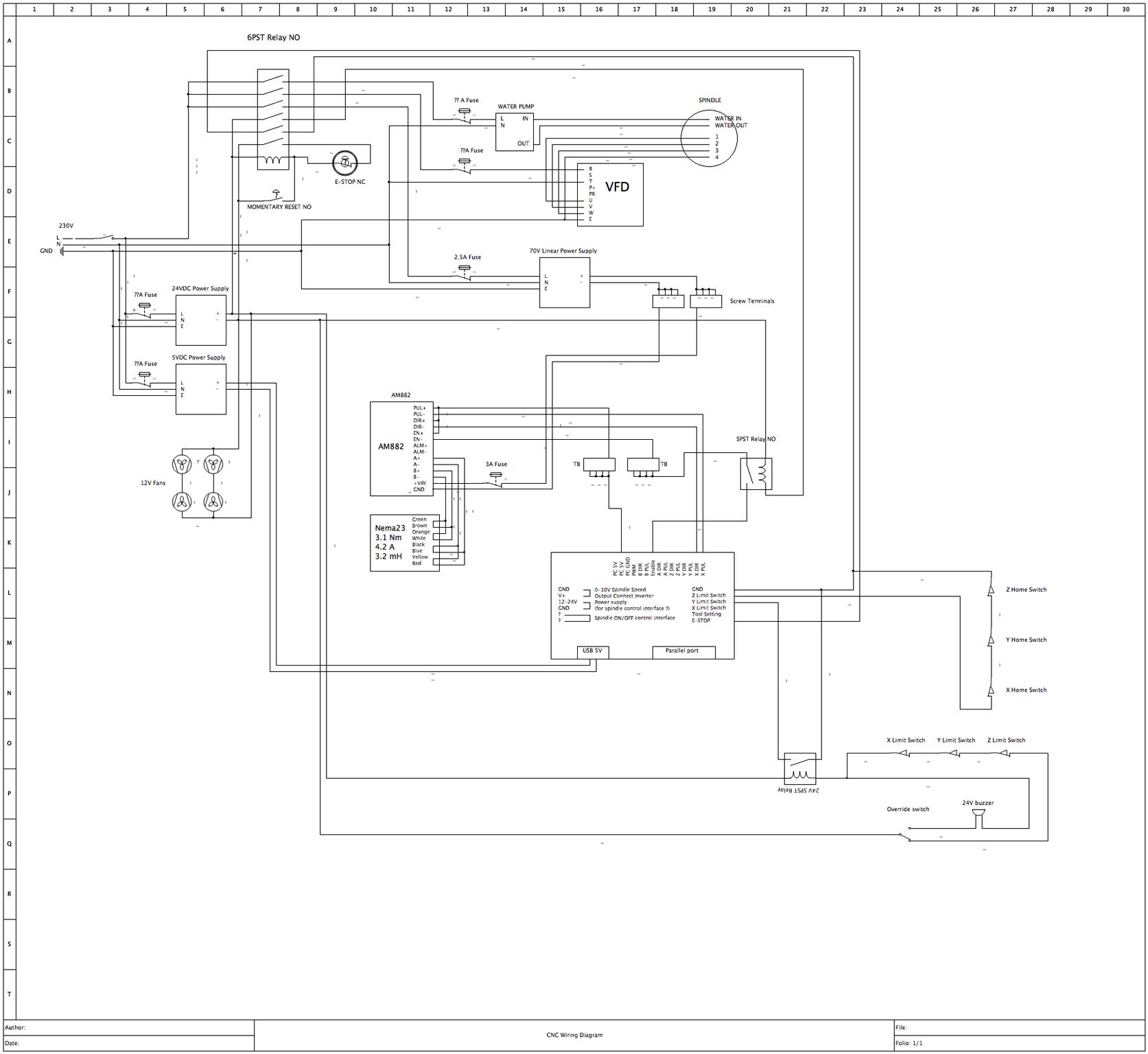 I might be wrong on #4 and #5. I don't understand why you have a 12V buzzer. Doesn't the BOB send 5V through the limits circuit ? Therefore, having a 5V buzzer would be enough ? It seems to me like your diagram causes the BOB to take 12V in when you press the override switch. I'm not sure the BOB can take that much on the input pins (thought I know it can on the spindle control interface).