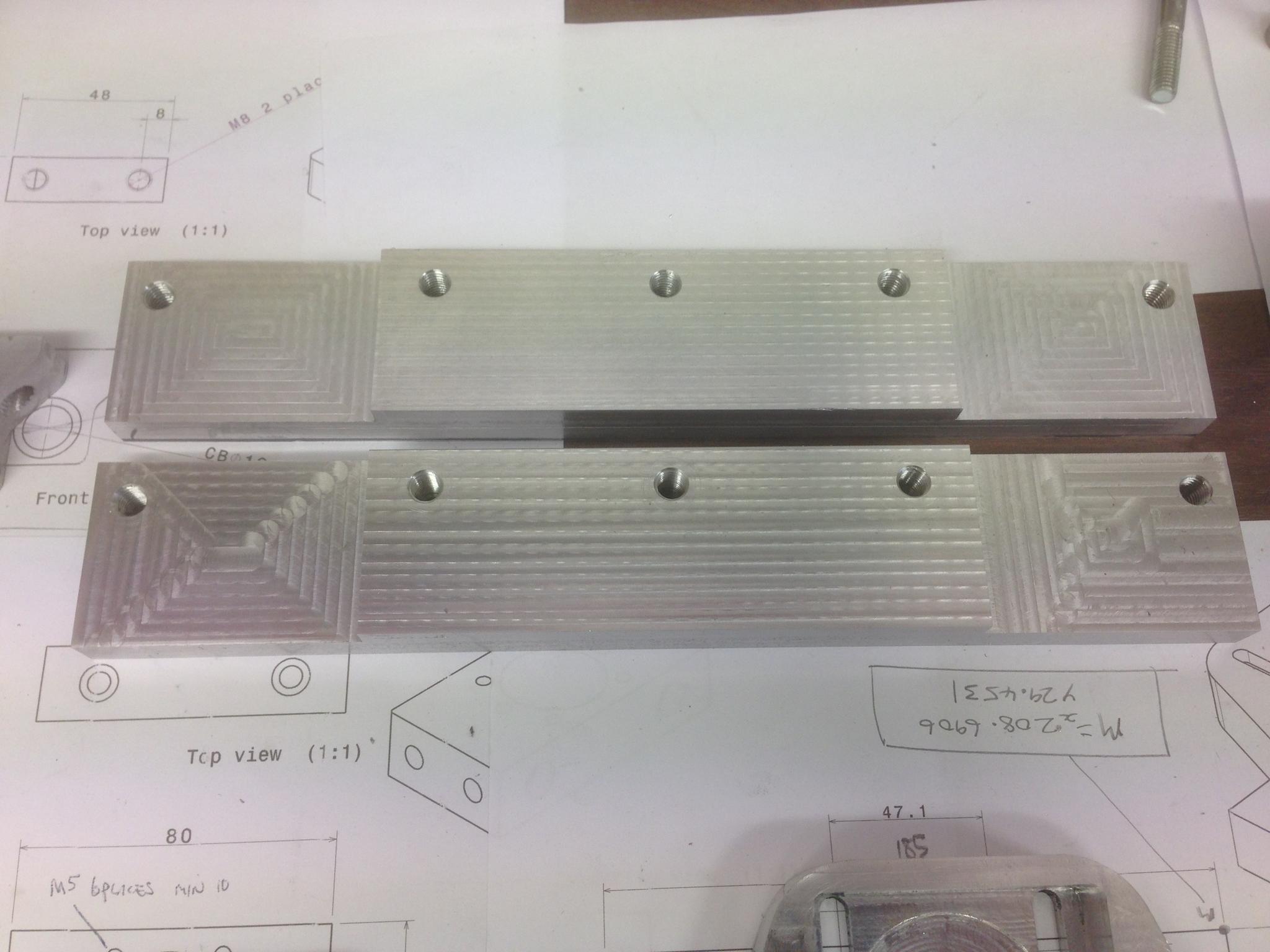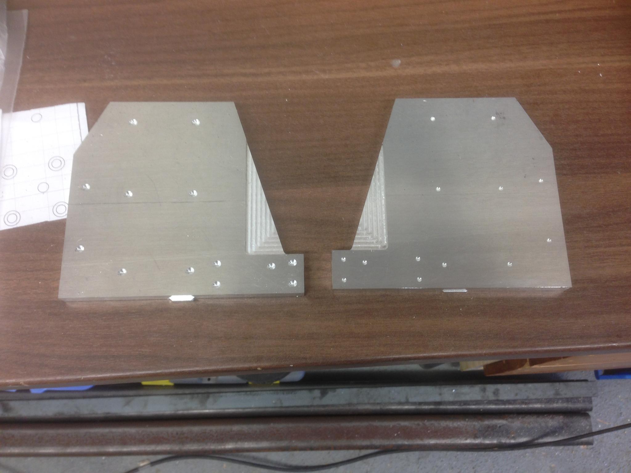 First pair of them cleaned up, drilled out, counterbored:
