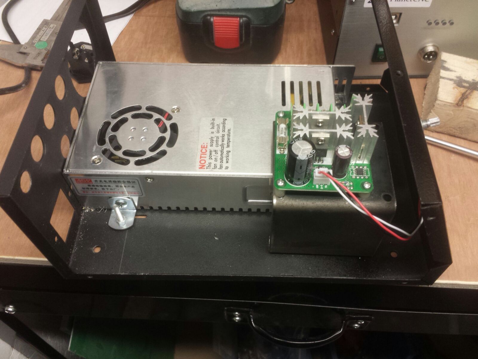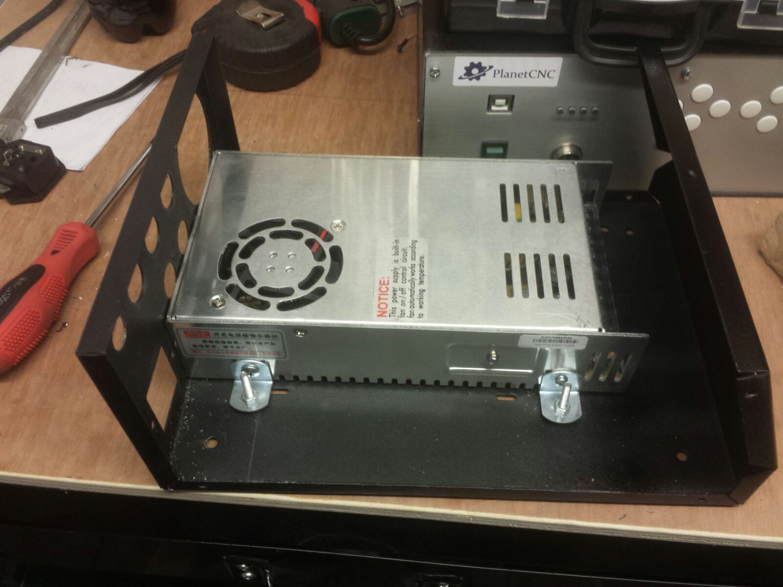 Now I mounted the power supply thing and bolted it now, I spaced it about 5mm up off the deck to help air flow, not sure if it is needed but though as there are vents on the underside it would make sense.