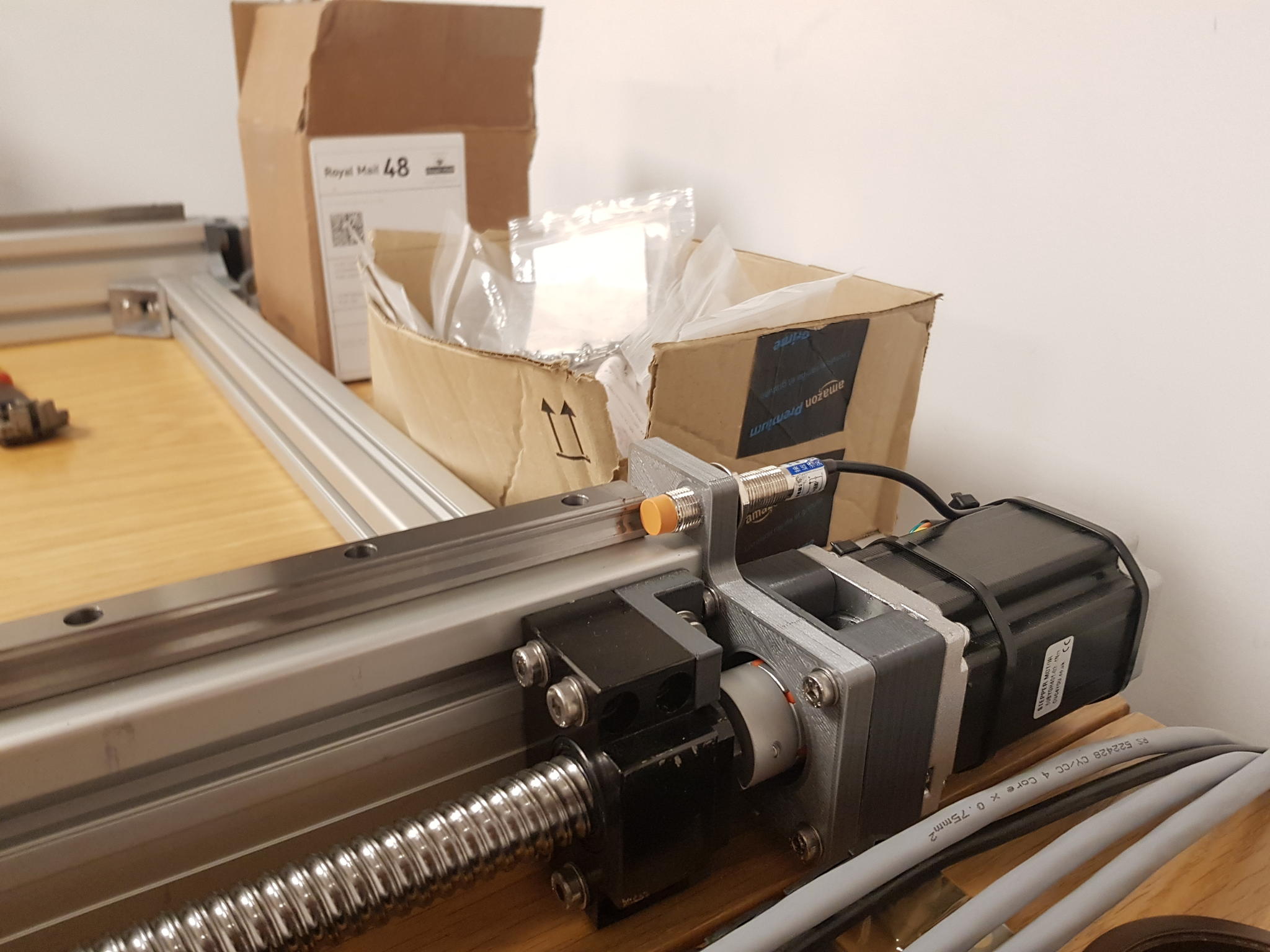 Havn't had as much time as i'd hoped the last few weeks to get much done, got all of the stepper wiring done, the cable drags turned up which meant i could get the lengths correct for the cables. I now have all Axis moving which is a nice milestone in the build. Ordered some Inductive Proximity sensors to act as limit switches, they seem to activate about 1.5mm from Aluminium, which should be ok for me. I need to do some research on the controller, as it has Terminals for Min, Max & Home for each Axis, what would be the scenario where you would have Home different to Min? Do some machines have Home at the Max or maybe Bed Centre?