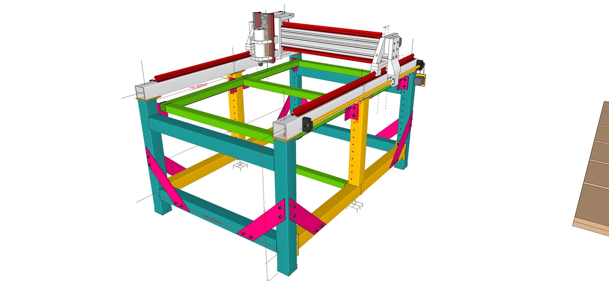 From someone that has tried to bolt together his machine to someone about to try, don't bother. It's very slow and you don't get any meaningful adjustment at the end. In SketchUp it's really easy to place a bolt hole and give yourself a perfect 1mm of play so you have some adjustment. In real life you won't be able to work to the sort of accuracy necessary unless you have a full on machine shop in which case you'd be better of just buying a CNC. Like you I'm going to bolt the main x-rail on but pretty much everything else will now be welded together (I've got the welder I'm now just waiting for a workshop that has sufficient power). I'm not entirely convinced that bolting on the x-axis rail will help all that much in preventing distortion, I've tried welding some of my 50x50x4 and I couldn't spot any distortion. What bolting will help with is shimming if you find your two rails aren't quite parallel in the z dimension.